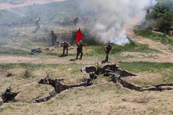 Перенестись в май 1944 года жителям и гостям города помогли военно-исторические клубы России: они воспроизвели один из эпизодов боя за стратегически важную высоту. На помощь бойцам пришла авиация – ее удары взрывали землю, накрывая огневые точки противника.