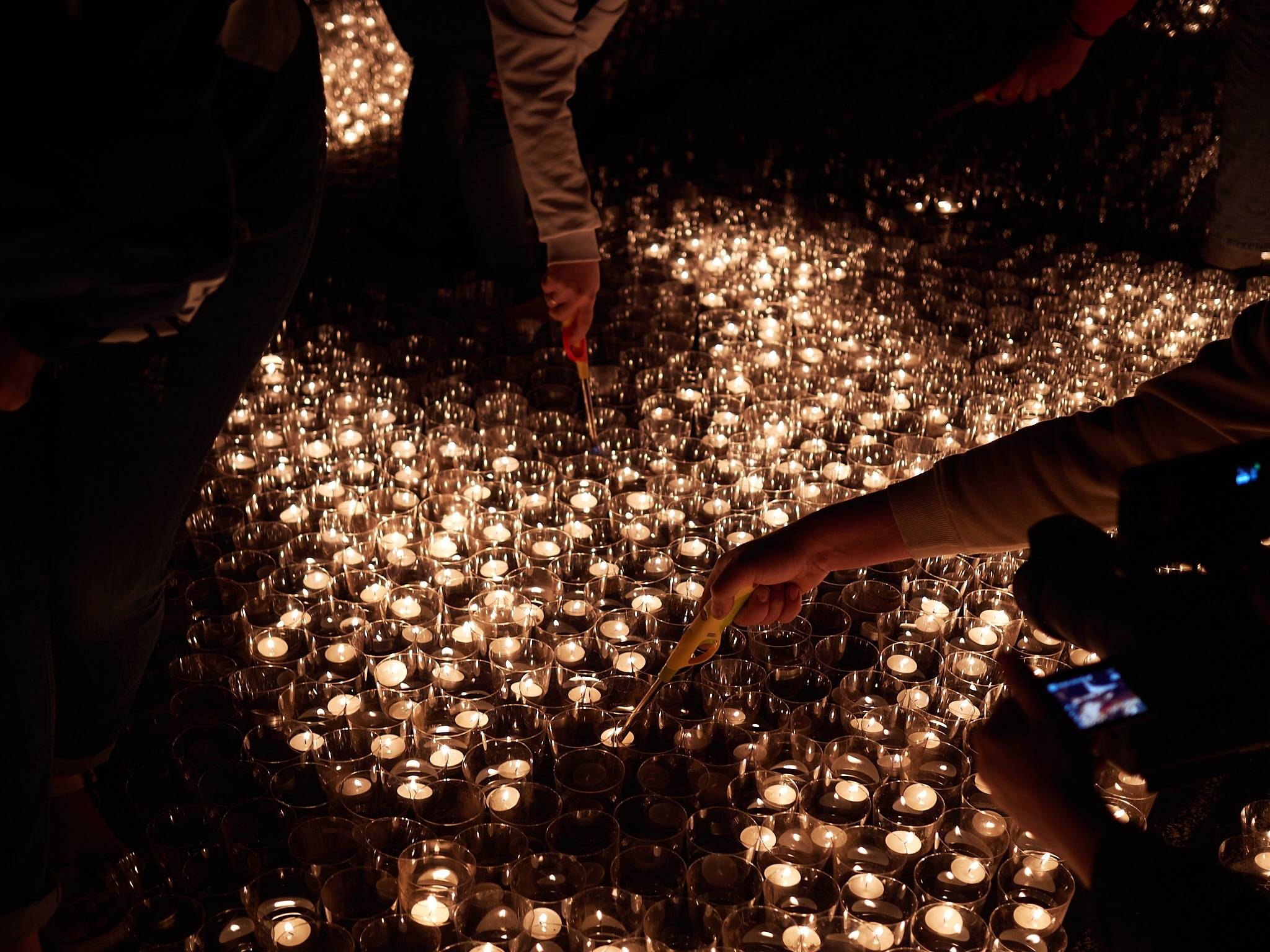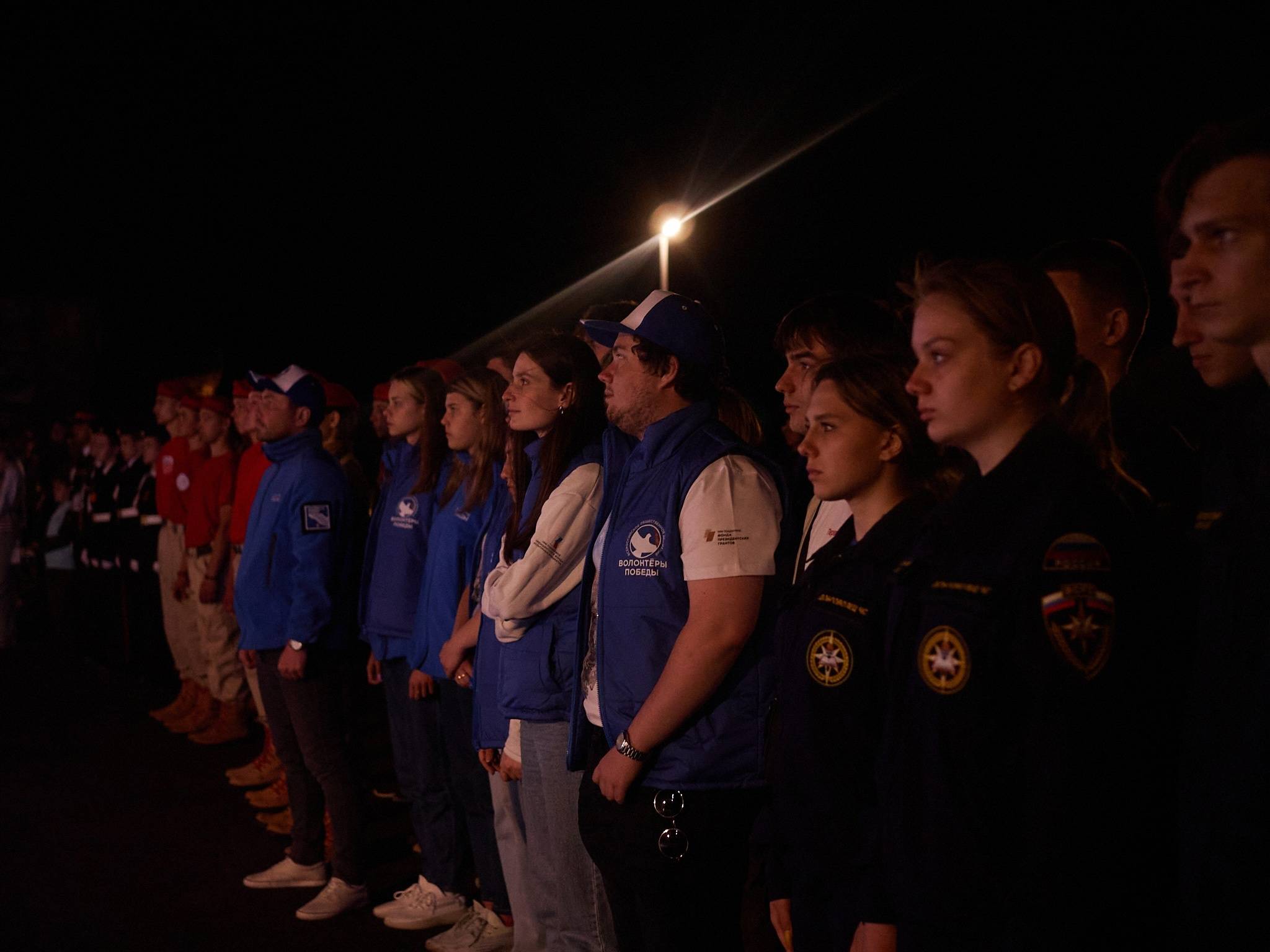 У подножия мемориала «Саур-Могила» в Донецкой Народной Республике (ДНР) в ночь на четверг зажгли 8000 свечей, выстроенных в композицию памятника Советским солдатам. Акция была приурочена ко Дню памяти и скорби.