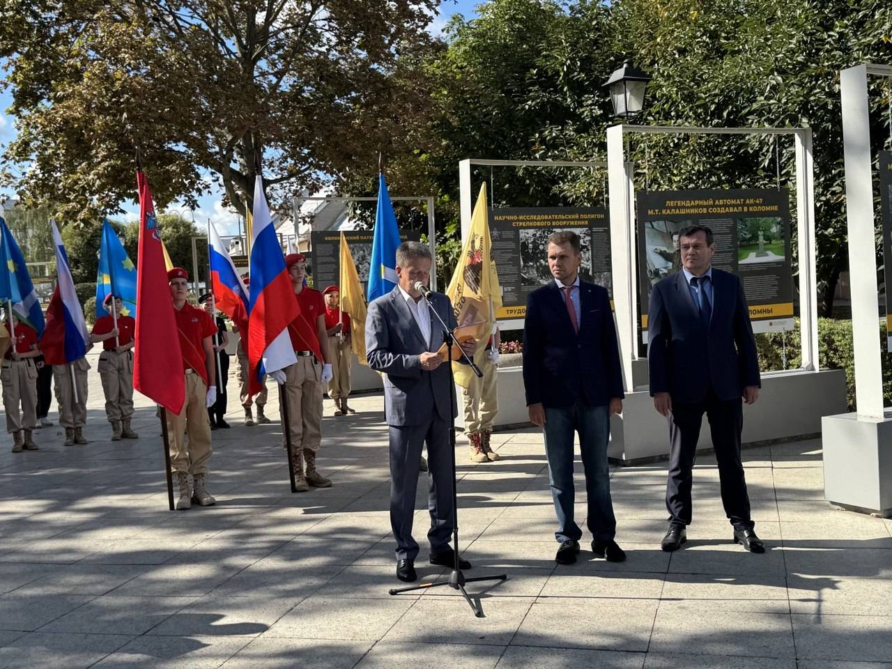 Собравшихся поприветствовал Андрей Ваулин, Председатель Местного отделения Российского военно-исторического общества. Он поздравил присутствующих с открытием новой экспозиции, поблагодарил всех причастных к ее созданию и отметил, что выставка достойна того, чтобы быть представленной не только в городском сквере, но и на ведущих предприятиях Коломны. Андрей Ваулин зачитал приветственный адрес от заместителя начальника Управления Президента РФ по политике в гуманитарной сфере, заместителя Председателя Российского военно-исторического общества Николая Овсиенко:
