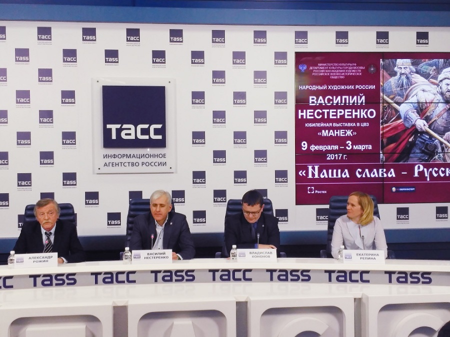Сегодня в пресс-центре ТАСС состоялась пресс-конференция народного художника России, исторического баталиста и автора росписей храма Христа Спасителя Василия Нестеренко, посвященная 50-летнему юбилею художника и открытию в Манеже его персональной выставки.