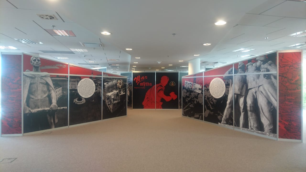 Выставка «Война и мифы» будет работать в Братиславе до 22 июля 2018 года. Экспозиция доступна для посетителей на двух языках: английском и словацком. Акцент сделан на роли Красной Армии в освобождении территории нынешней Словакии от фашистской оккупации в годы Второй мировой войны.