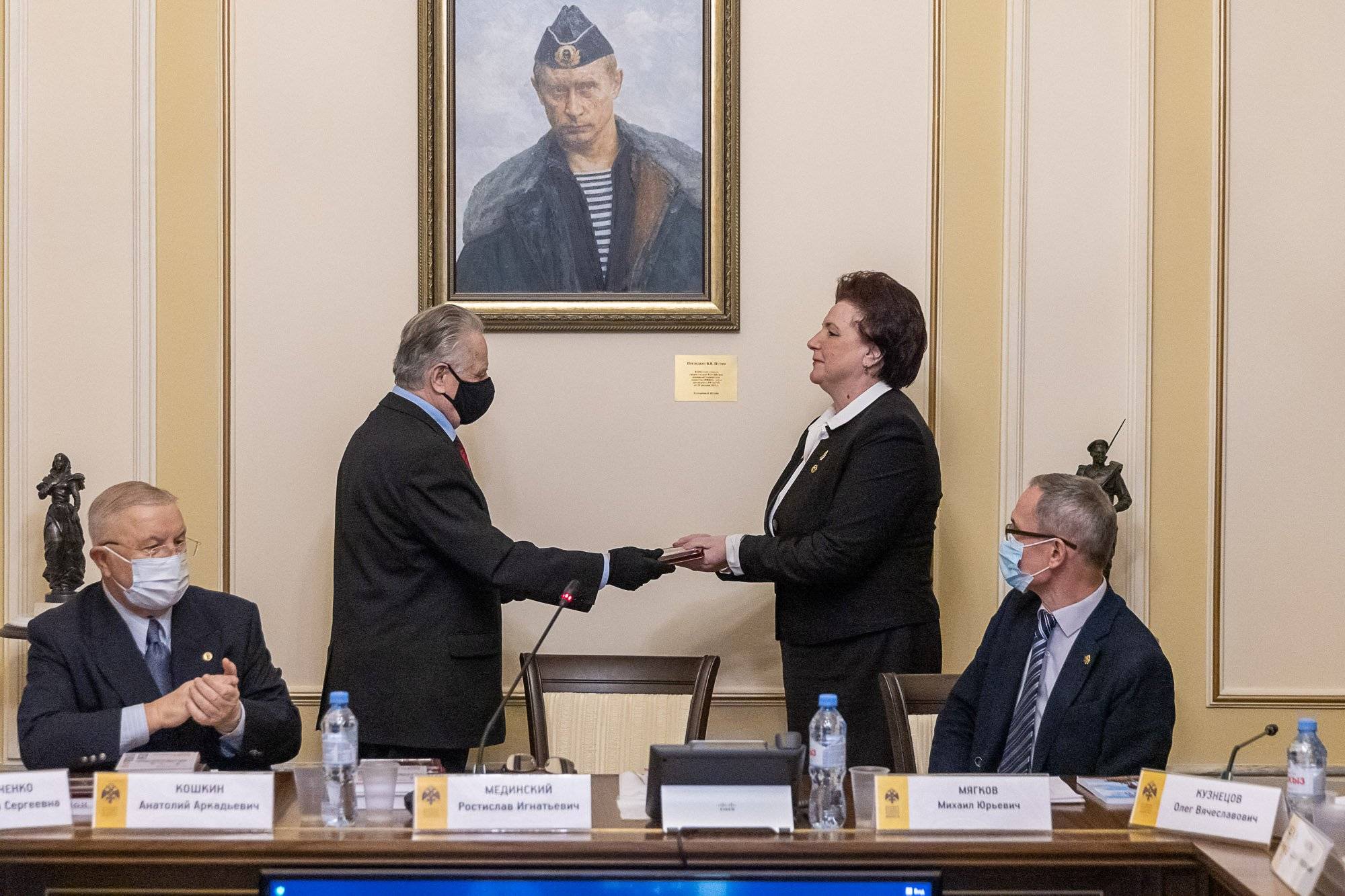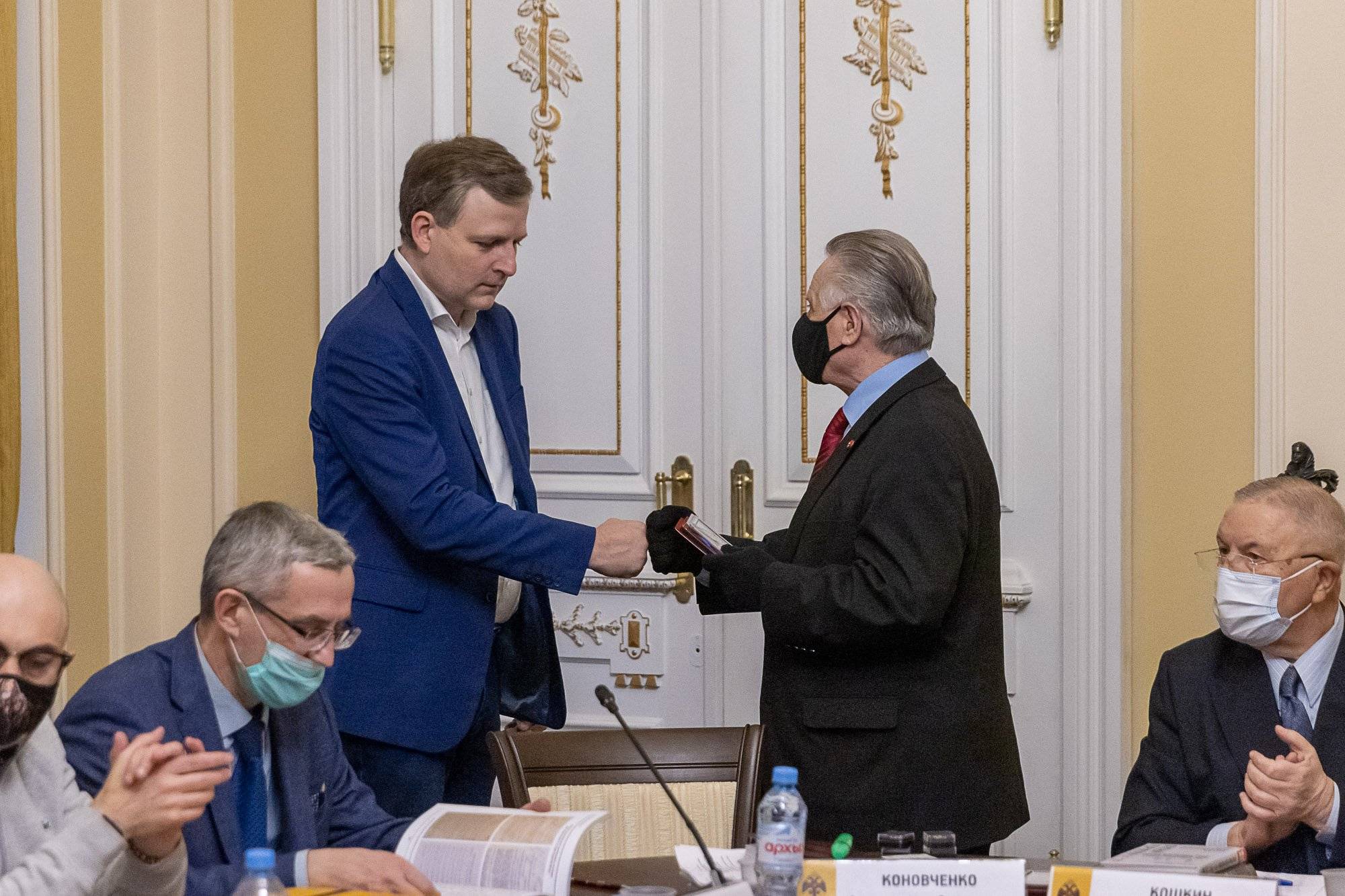 В начале заседания советник Председателя Российского военно-исторического общества Ростислав Мединский вручил награды членам Научного совета. За большой личный вклад в сохранение исторической памяти и активное участие в создании мемориального комплекса «Александр Невский с дружиной» Почетной грамотой РВИО и медалью «800 лет со дня рождения князя Александра Невского» награжден ведущий научный сотрудник Института российской истории РАН Константин Аверьянов. За активную работу по патриотическому воспитанию граждан России и за особый вклад в подготовку празднования 800-летия князя Александра Невского медалями были также отмечены профессор Института стран Востока, председатель Научного совета Анатолий Кошкин, руководитель Центра региональных проектов и межрегиональных связей Рязанского государственного университета имени С.А. Есенина Ольга Воронова, профессор Военного университета Вячеслав Зимонин и специальный корреспондент МИА «Россия сегодня» Владимир Сычев.