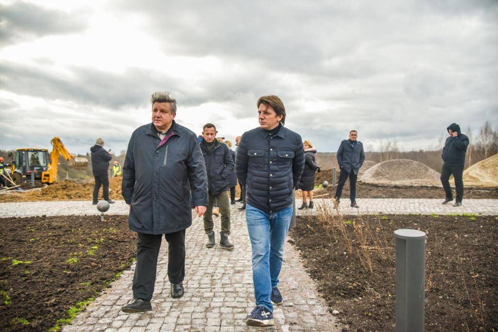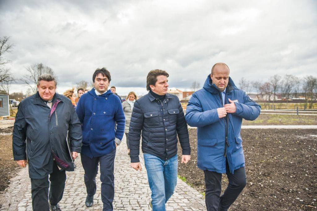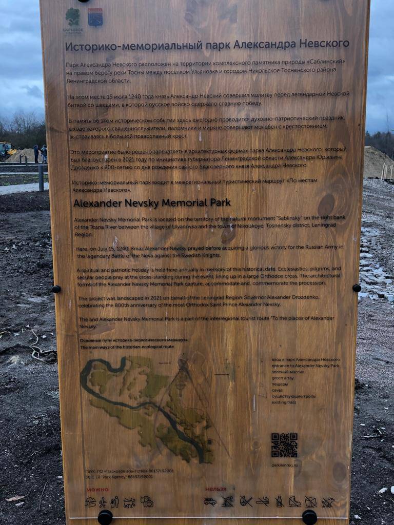 Николай Овсиенко и Владимир Цой вместе с заместителем Председателя Правительства Ленинградской области по строительству и жилищно-коммунальному хозяйству Евгением Барановским выехали также в Тосненский район к месту установки памятника святому благоверному князю Александру Невскому «Молитва перед боем», где провели рабочее совещание.