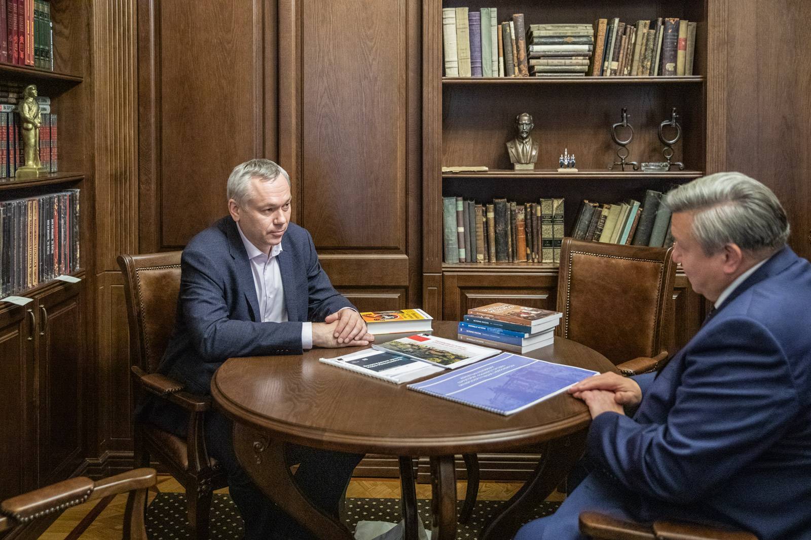 В ходе встречи Николай Овсиенко и Андрей Травников обсудили продвижение учебно-методического комплекса по истории России и всеобщей истории. Глава региона взял с собой сигнальные экземпляры нового комплекта, уже дал поручение проработать его использование со следующего учебного года.