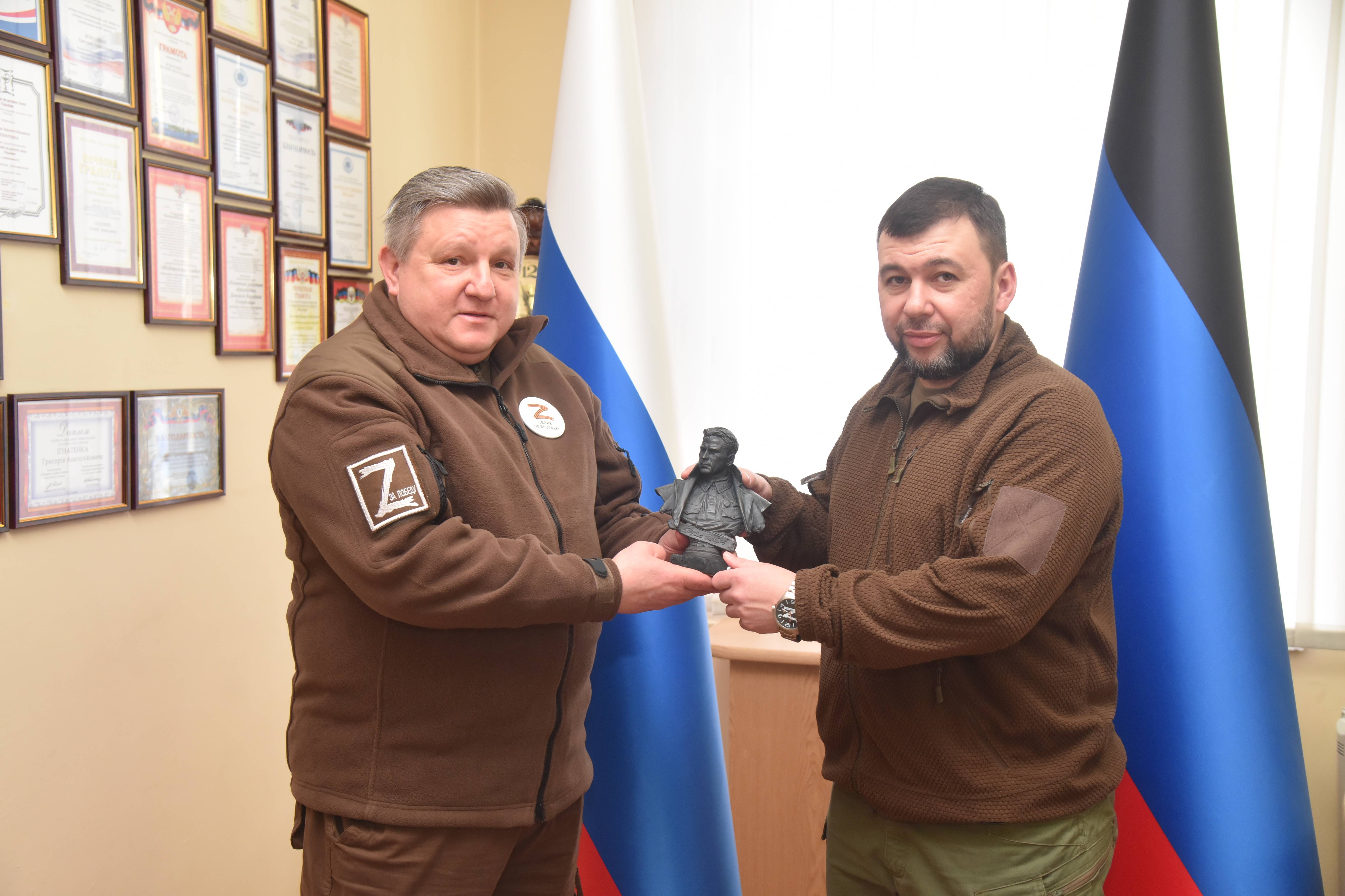 Важным событием дня стала рабочая встреча заместителя Председателя Российского военно-исторического общества Николая Овсиенко и временно исполняющего обязанности Главы Донецкой Народной Республики Дениса Пушилина. Стороны обсудили вопросы сохранения военно-исторического наследия на территории ДНР. В завершение встречи Николай Овсиенко передал Денису Пушилину уменьшенную копию памятника Павлу Судоплатову, установленного РВИО на площади Правосудия в Донецке.