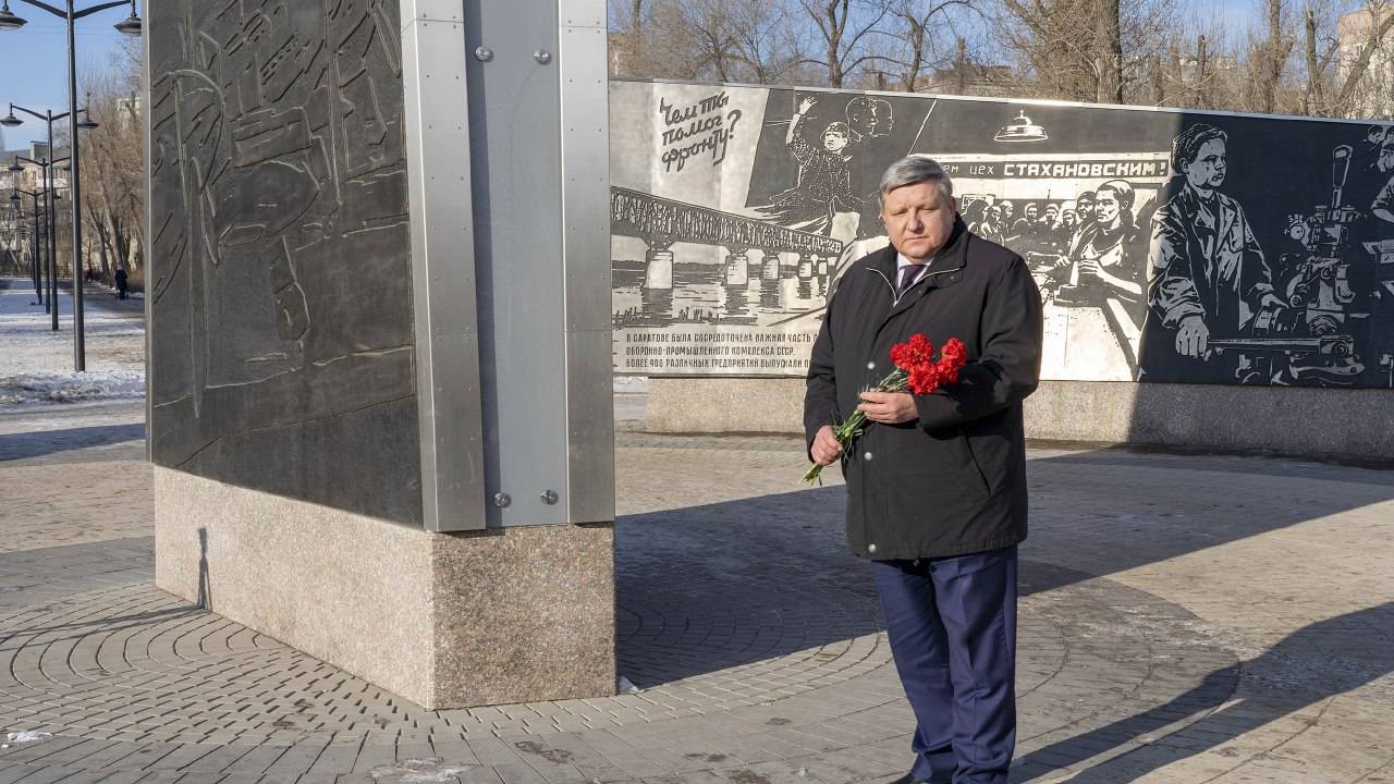 В продолжение дня Николай Овсиенко возложил цветы к стеле «Город трудовой доблести», которая была открыта РВИО в Саратове в июле 2022 года и стала важным местом памяти для жителей региона.