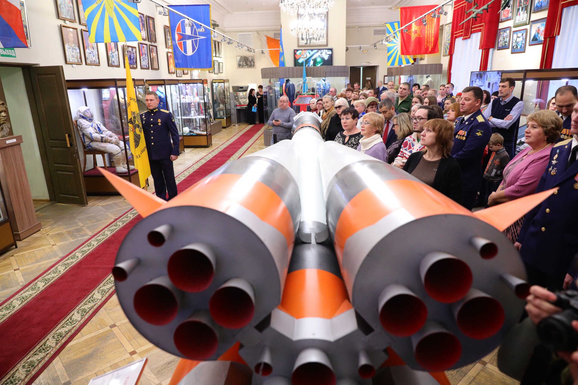 Ростислав Мединский передал в дар музею форму космонавта из Центра подготовки космонавтов, знамя РВИО и модель памятника полному Георгиевскому кавалеру Василию Алексеевичу Черемисину.
