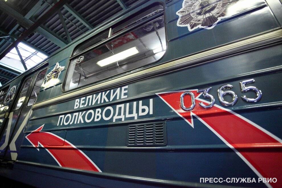 Вагоны именного состава «Великие полководцы» посвящены прославленным полководцам: Александру Суворову, Михаилу Кутузову, Георгию Жукову, Александру Невскому, Дмитрию Донскому, Константину Рокоссовскому, Михаилу Скобелеву, Алексею Ермолову, Павлу Нахимову и Федору Ушакову. Уникальный поезд, курсирующий по Сокольнической линии Московского метрополитена, знакомит своих пассажиров с подвигами прославленных полководцев, фактами из их биографий, рассказывает об их роли в истории нашего государства.