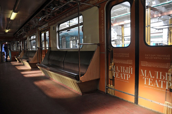 Сегодня на Замоскворецкой линии московского метро начал курсировать тематический поезд, посвященный Малому театру России. Предполагается, что за полгода именной состав перевезет порядка 2 миллионов человек.