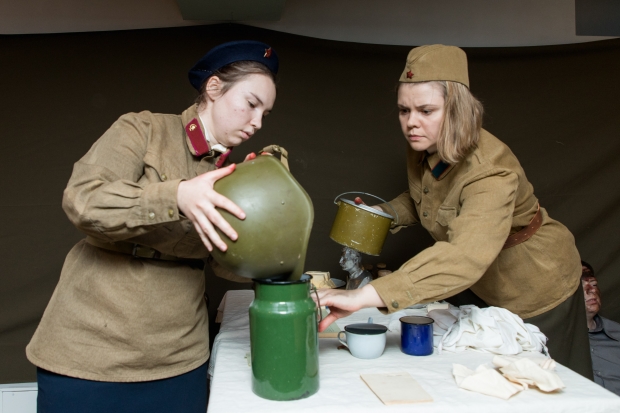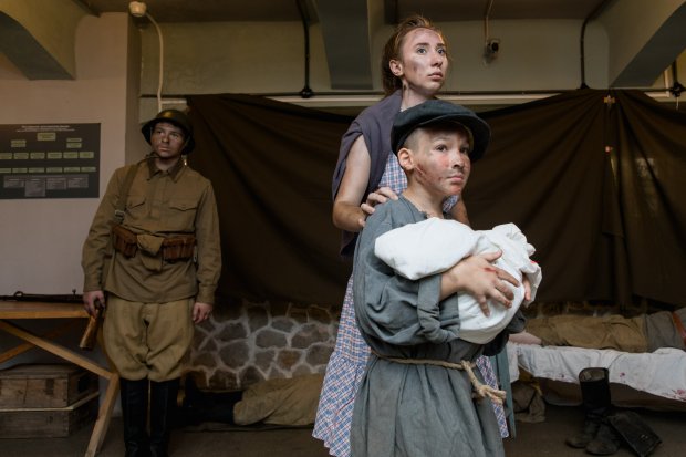 Реконструкторам удалось найти документы и воспоминания о том, что медпункт практически стал импровизированным госпиталем, который возглавлял командир Красной Армии Перепечаев. В постановке приняли участие актеры-любители разных возрастов и профессий.