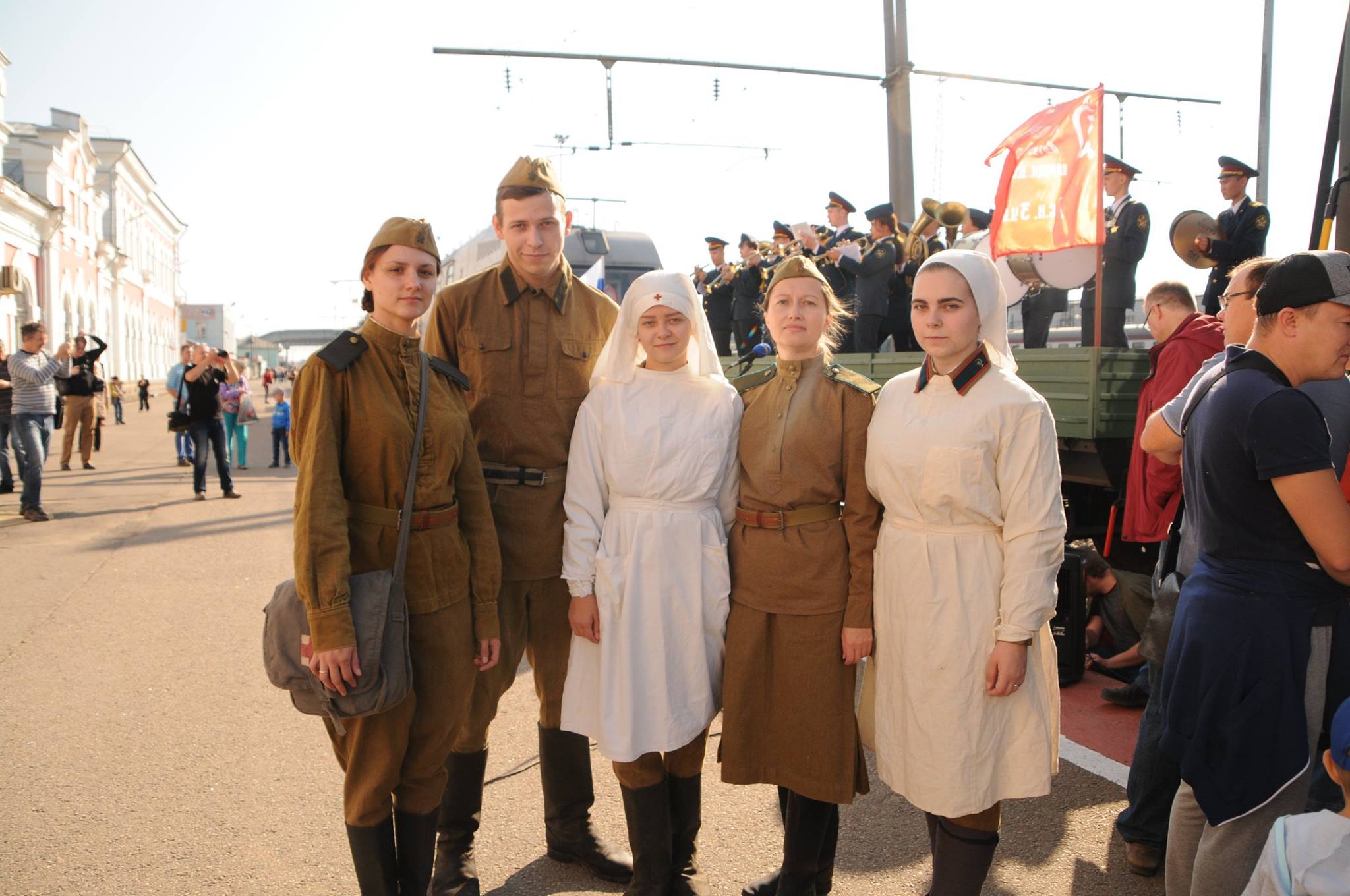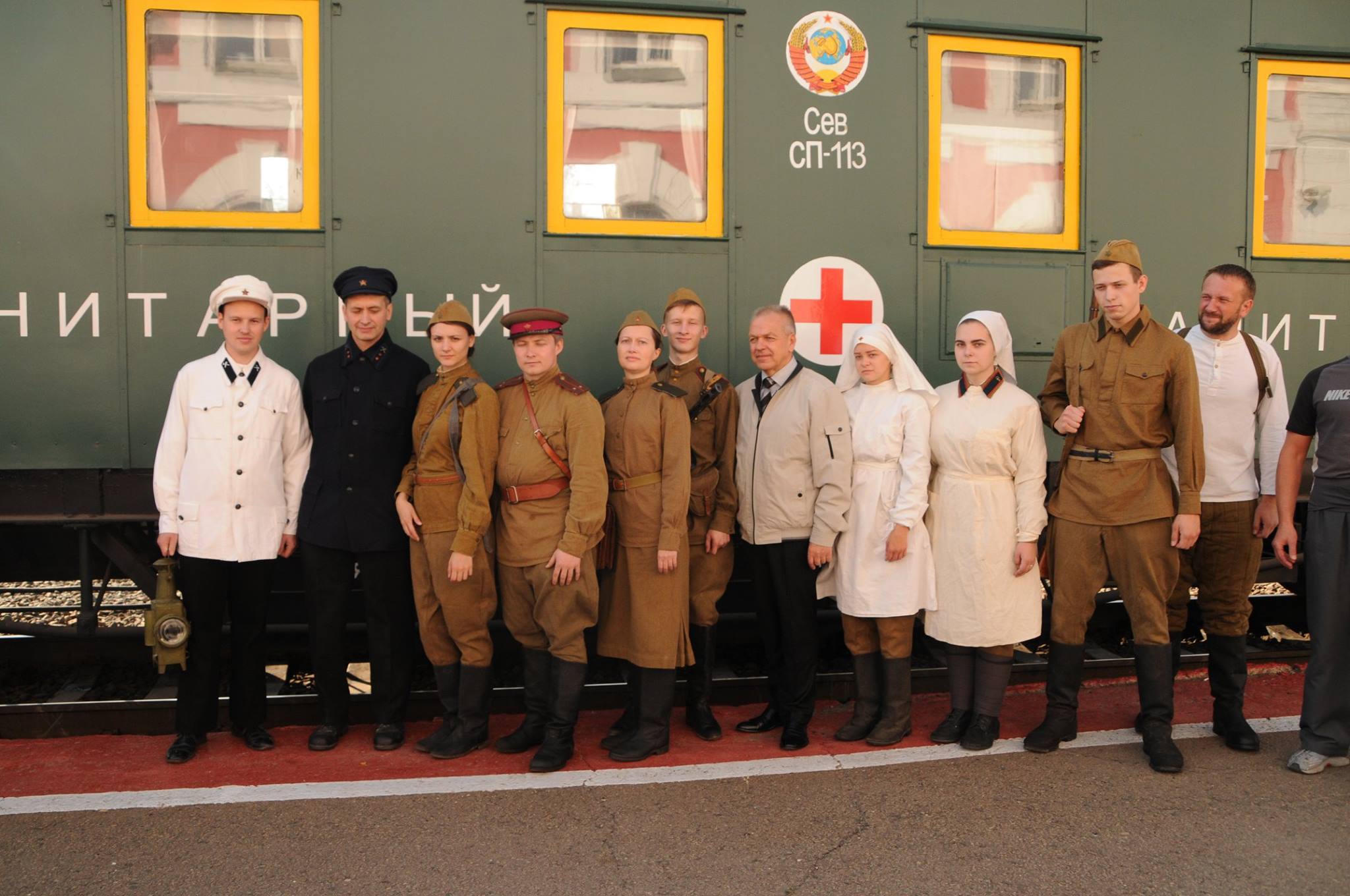 Атмосферу военных лет около вагона-музея и внутри него создали члены Вологодского военно-исторического общества при участии Вологодского регионального отделения Российского военно-исторического общества. В ходе реконструкции медсестры оказывали помощь раненым, солдаты, направляющиеся на фронт, отдыхали на перроне.