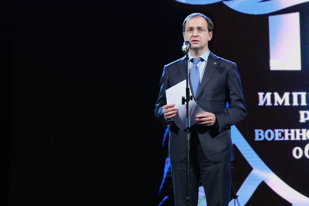 Открывая церемонию, Владимир Мединский зачитал приветственные телеграммы, поступившие в адрес РВИО от имени Президента России Владимира Путина и Председателя Правительства Российской Федерации Дмитрия Медведева.