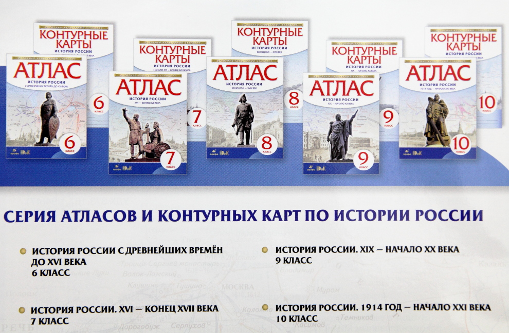 В рамках сотрудничества Российского военно-исторического общества и объединенной издательской группы «ДРОФА» – «ВЕНТАНА-ГРАФ» из печати вышли атласы и контурные карты, входящие в учебно-методические комплексы к линиям учебников по истории для 6-10 классов, рекомендованные Министерством образования и науки РФ.
