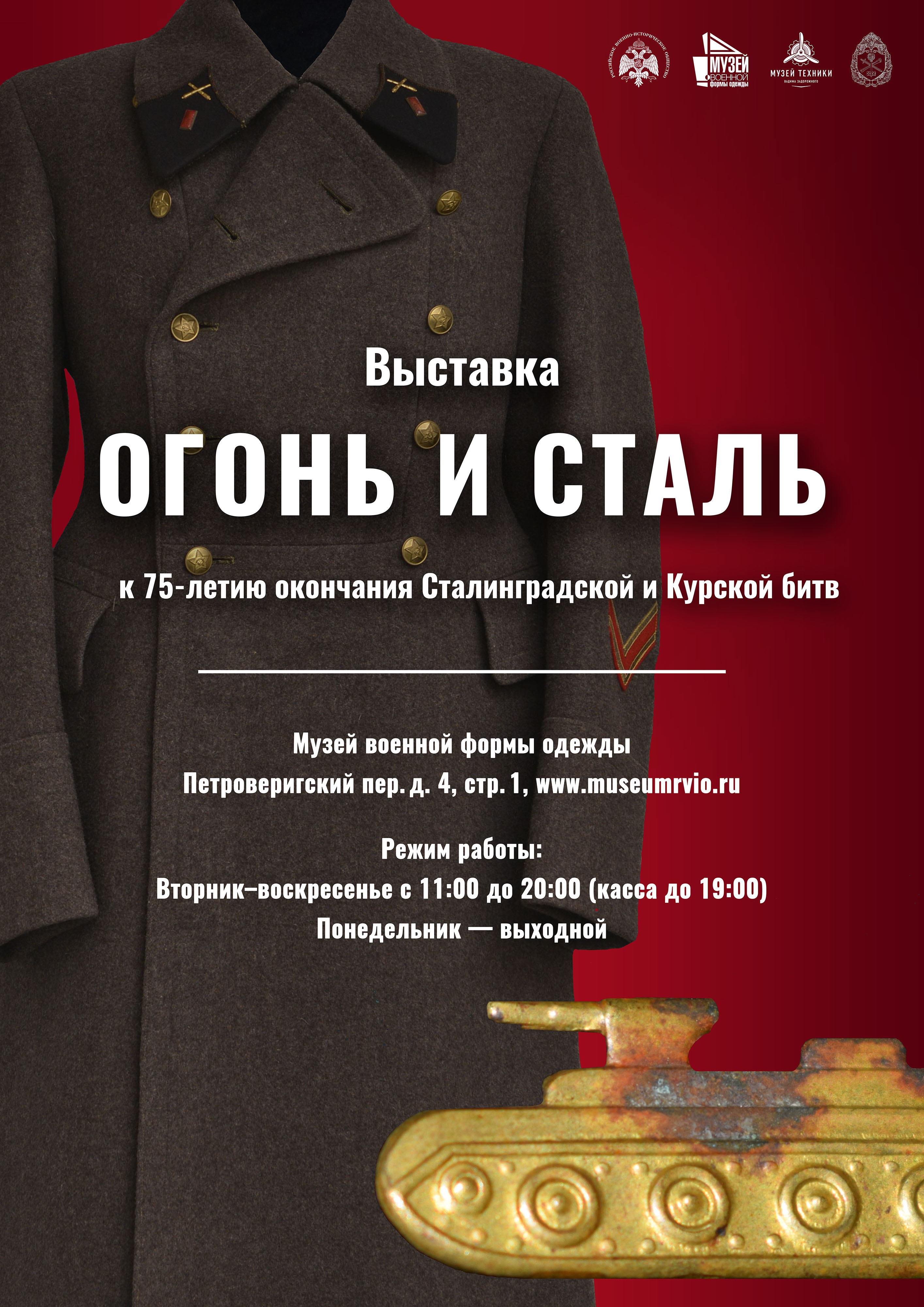 В Музее военной формы одежды РВИО (Москва, Петроверигский переулок, дом 4, стр. 1.) открылась выставка «Огонь и сталь», посвященная 75-летию окончания Сталинградской и Курской битв.