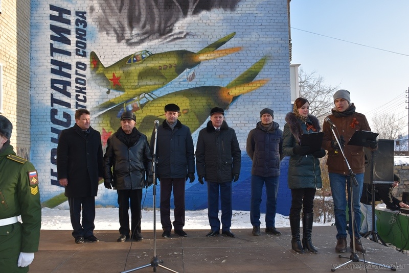 Сегодня в Пензе состоялось торжественное открытие граффити-композиции «Он погиб, чтобы жили мы», посвященной Герою Советского Союза Константину Анохину.
