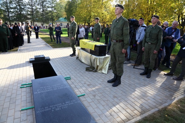 Церемония перезахоронения останков русского воина, смертельно раненного в битве у города Ножан-сюр-Сен и скончавшегося в военном госпитале в феврале 1814 года, прошла на Бородинском поле.