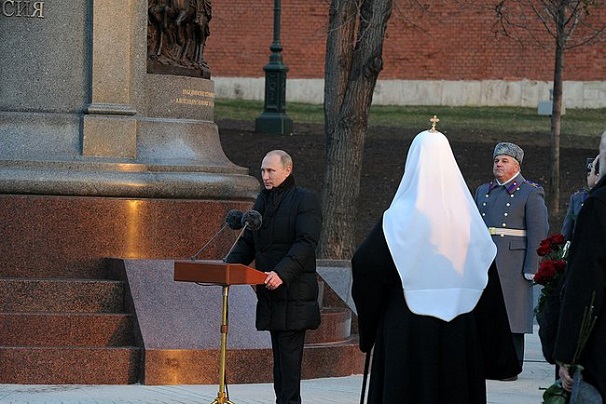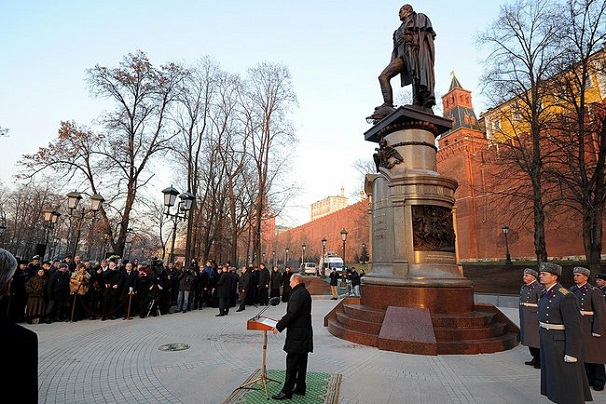 Владимир Путин принял участие в церемонии открытия в Александровском саду у стен Московского Кремля памятника императору Александру I.