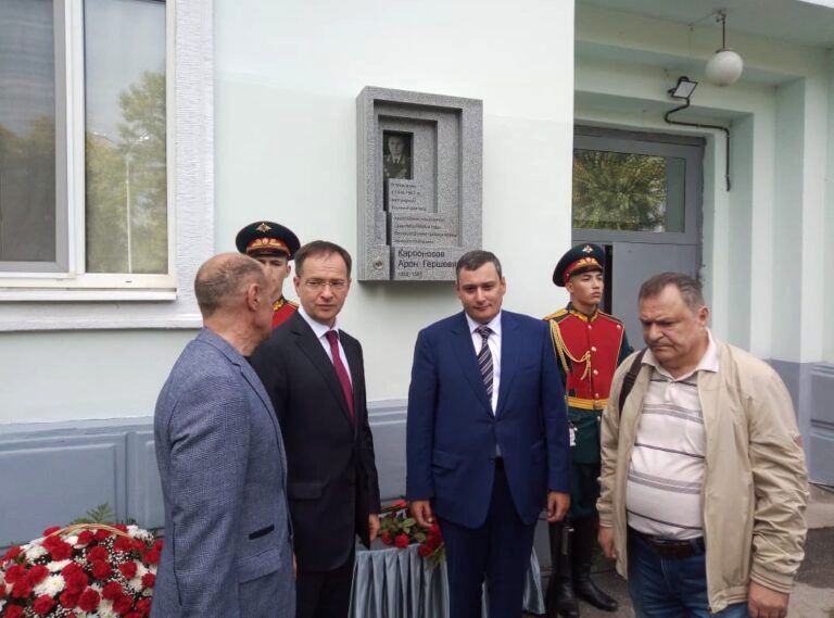 - Знаменательно, что в год юбилея Великой Победы мы открываем мемориальную доску нашему земляку генерал-лейтенанту Арону Гершевичу Карпоносову. Он один из тех, чья воля, характер сделали возможным победу нашей страны во Второй мировой войне. Суворов говорил, что война не заканчивается, пока не похоронен последний солдат. Я бы дополнил: она не заканчивается, пока мы не сделаем все возможное для увековечения памяти каждого из солдат, которые прошли эту войну. Открывая эту мемориальную доску, мы отдаем дань памяти не только нашему уважаемому земляку, но и всем тем, кто прошел тяжелые годы войны, кто обеспечил спокойную мирную жизнь и отстоял свободу и независимость нашей страны, — отметил глава региона Виктор Кудряшов.
