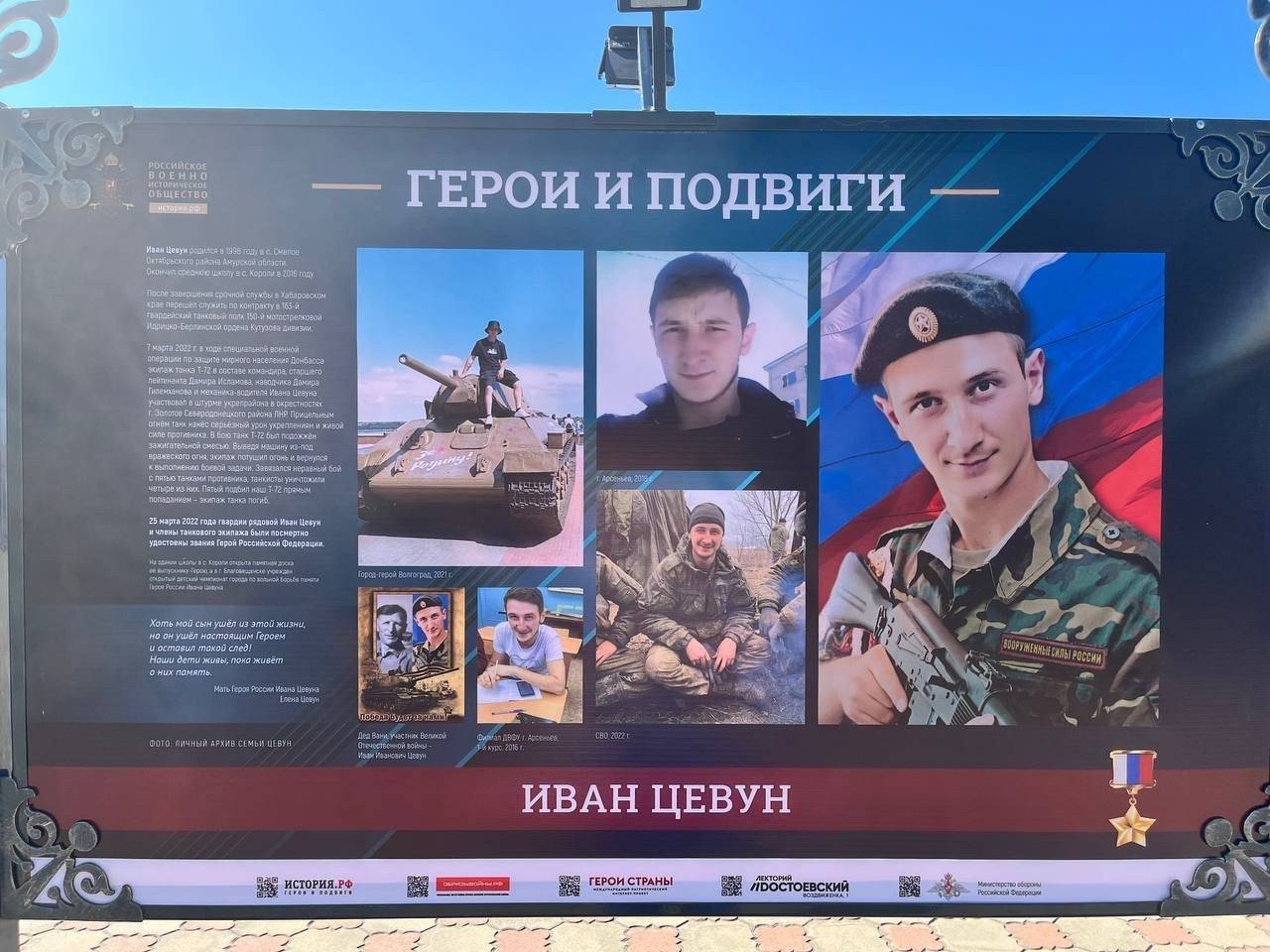 На стендах можно увидеть истории уроженцев самых разных уголков нашей страны, включая 13 Героев России, чья жизнь и служба неразрывно связаны с Амурской областью. Это солдаты и офицеры военно-воздушных сил, морской пехоты, мотострелковых частей и подразделений специального назначения, танкисты, разведчики и другие.