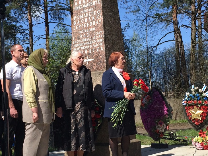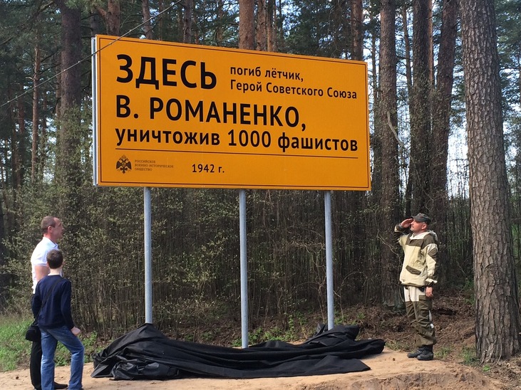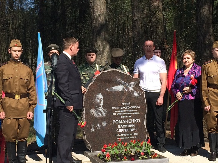 - 73 года у Героя Романенко не было могилы. Мой дед - летчик, вернувшийся с войны, говорил, что у летчиков нет могил, их могила - небо. Этот знак-это наш долг, теперь не только мы, но и все проезжающие будут знать, где похоронен Герой. Этот памятник всем неравнодушным ,тем, кто занимается поисковыми работами, чтобы вернуть, всей нашей стране. Ведь Неизвестных солдат нет, есть неизвестные герои .А наша роль -передать память о них нашим детям и внукам. Спасибо вам за память, - сказал перед открытием информационного знака Сергей Мачинский. От лица Министра культуры Российской Федерации, Председателя Российского военно-исторического общества Владимира Мединского он поблагодарил за содействие всех участников мероприятия.