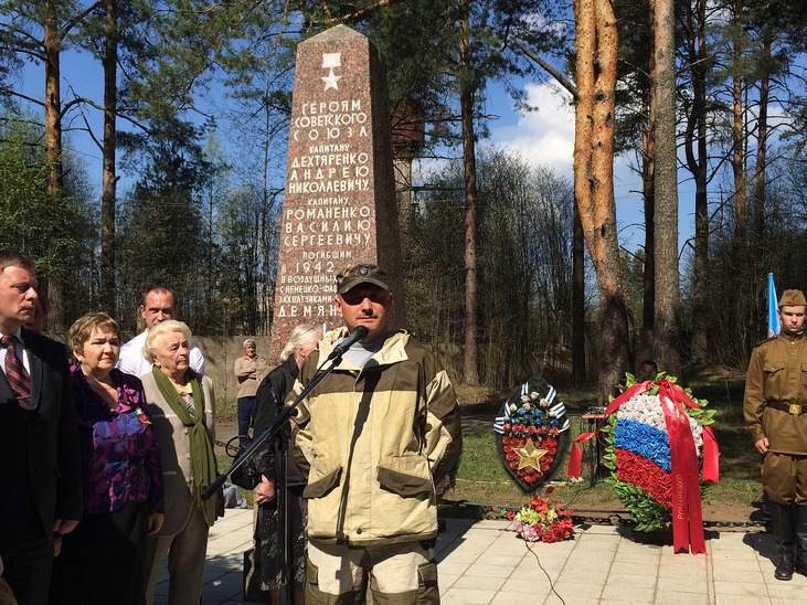 Сегодня в Демянске Новгородской области состоялось торжественное открытие памятного знака на могиле летчика, Героя Советского союза Василия Романенко и информационного дорожного знака, установленного РВИО на въезде в город Демянск.