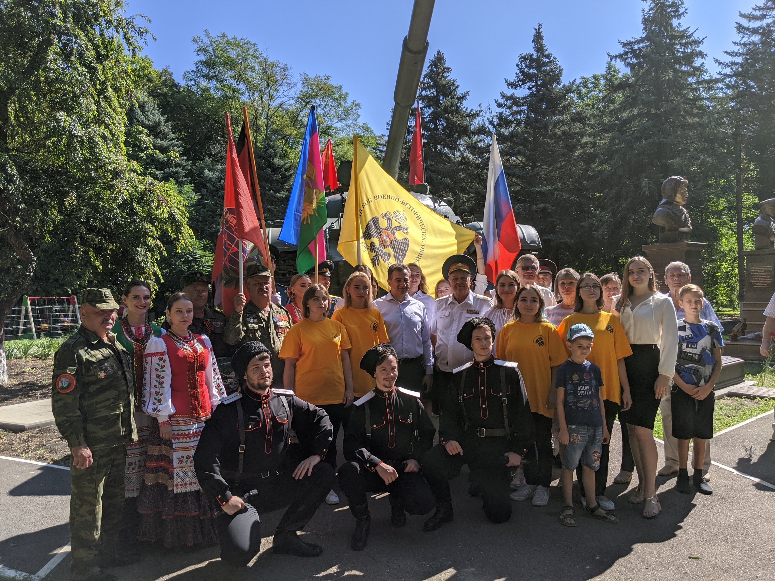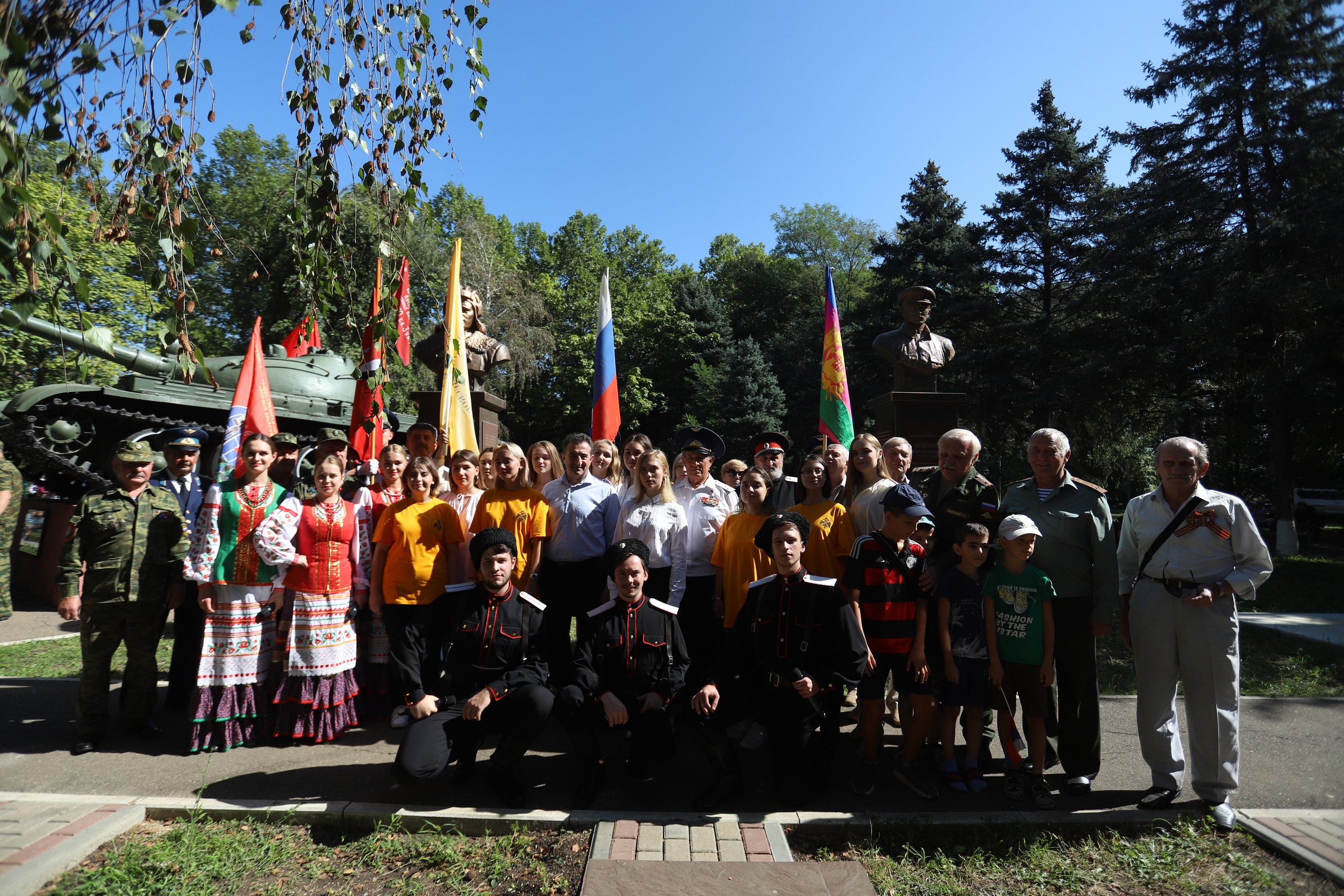 В Краснодаре состоялась торжественная церемония по случаю открытия памятника-бюста выдающегося танкиста Якова Трофимовича Кобзаря. Памятник установлен Краснодарским Региональным отделением Российского военно-исторического общества на территории сквера Памяти Героев-танкистов в п. Колосистый.