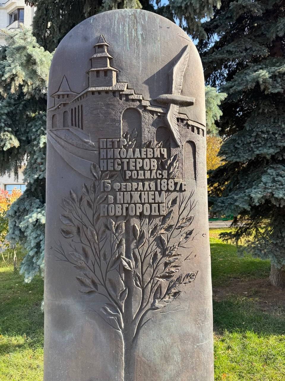 Памятник Петру Нестерову в Нижнем Новгороде установлен в 1987 году на Верхне-Волжской городской набережной в честь 100-летнего юбилея лётчика.