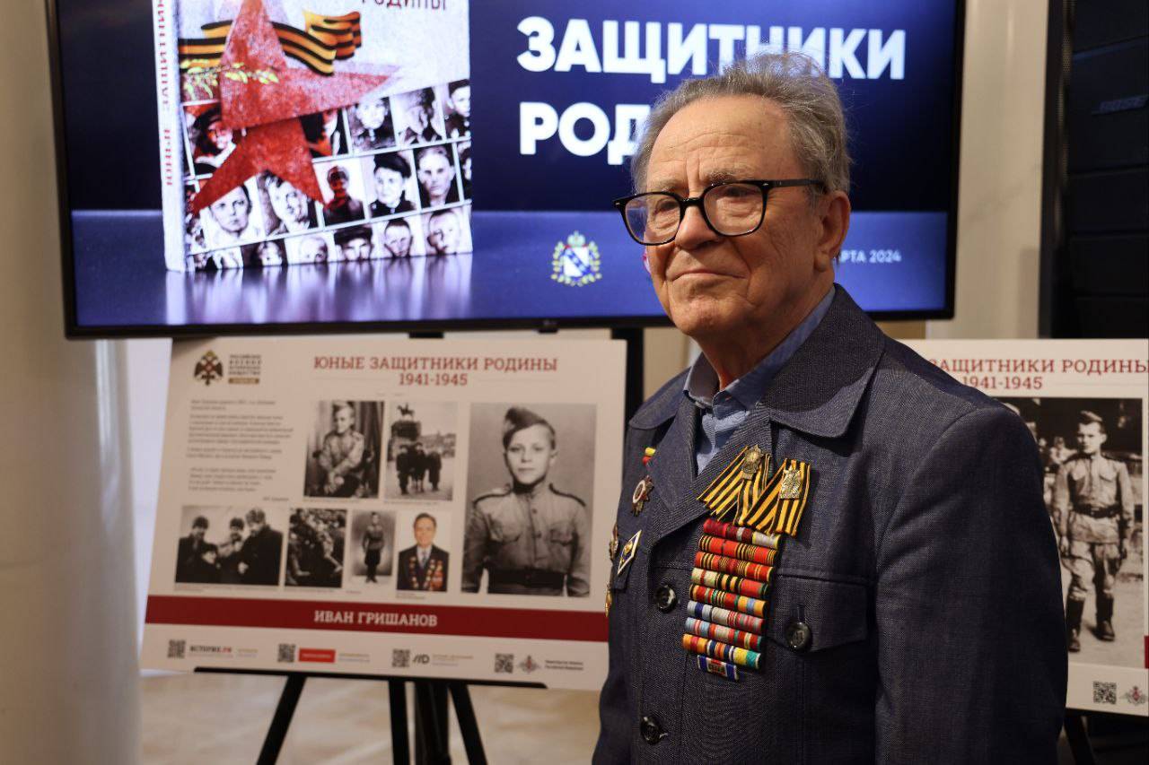 Гостям презентации была представлена одноименная стендовая выставка РВИО «Юные защитники Родины». Выставка создана Российским военно-историческим обществом совместно с Музеем «Юные защитники Родины» – филиалом Курского областного краеведческого Музея. Один из Героев выставки - Ветеран Великой Отечественной войны, поэт-фронтовик, сын полка Иван Гришанов.