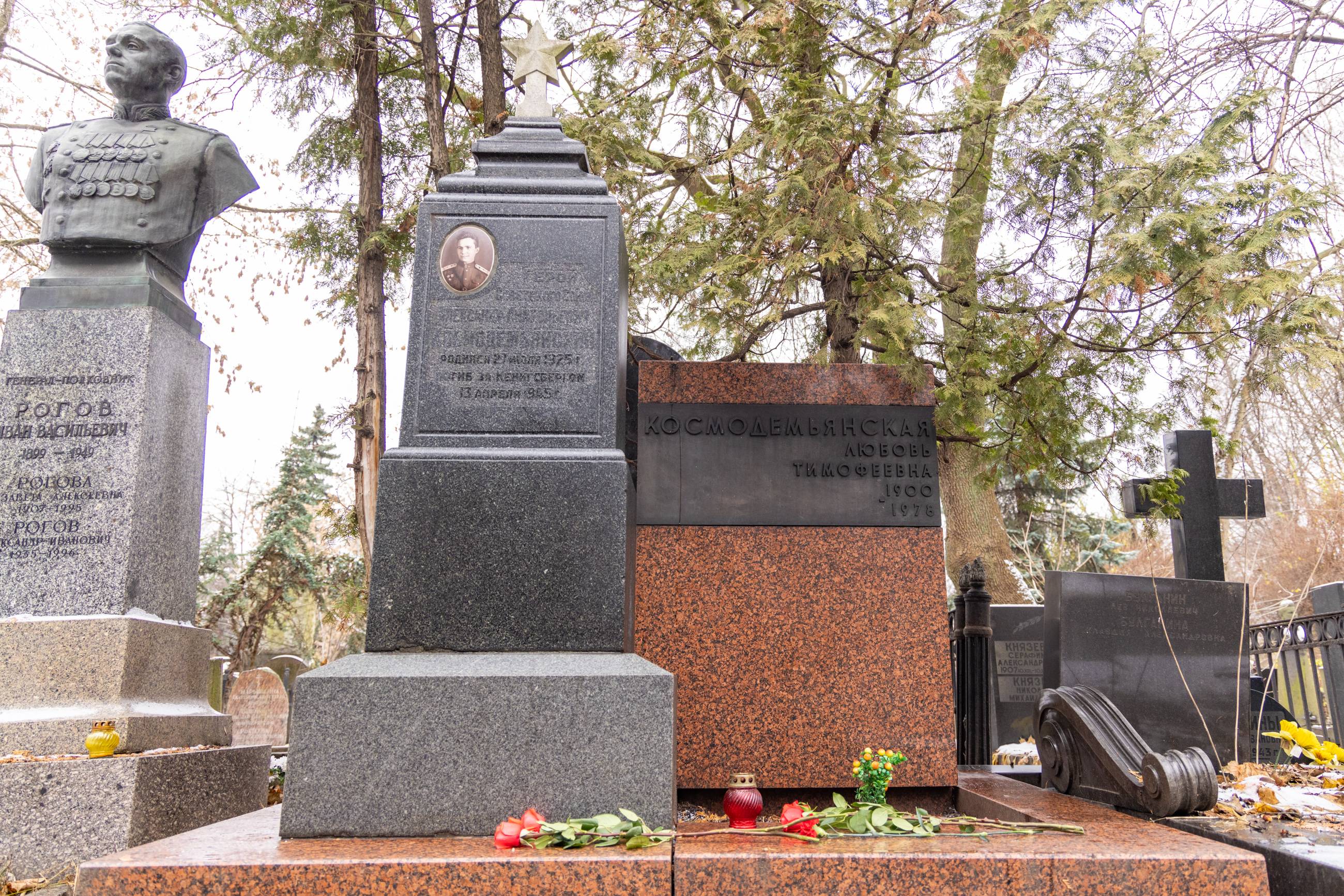 Сегодня, в День Памяти Зои Космодемьянской, помощник Президента РФ, Председатель Российского военно-исторического общества Владимир Мединский возложил цветы к могиле Героини. На Новодевичьем кладбище в Москве вечный покой нашли Герои Советского Союза – Зоя и Александр Космодемьянские, а также их мама Любовь Тимофеевна Космодемьянская.