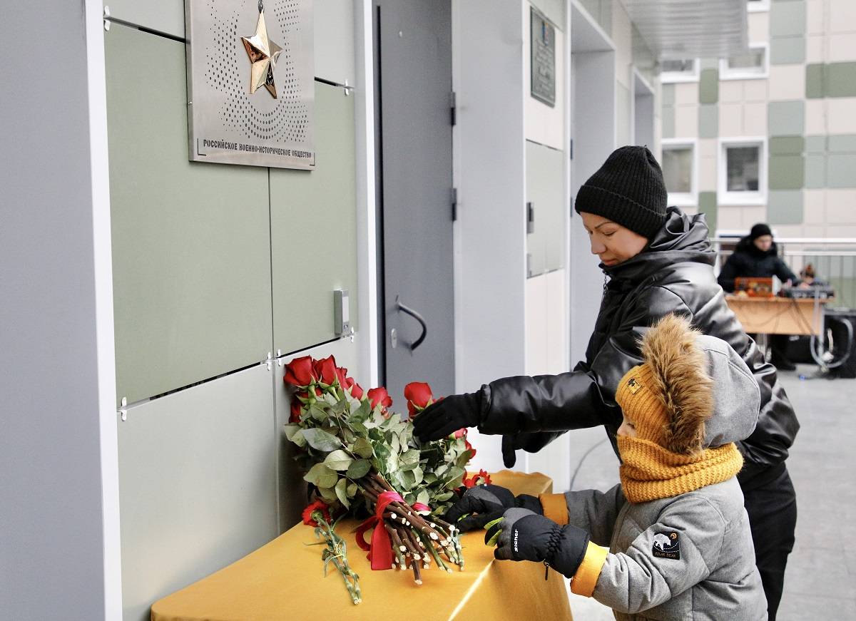 На церемонии открытия памятной доски присутствовали члены семьи Героя – его вдова и сын, родители, братья, сёстры.