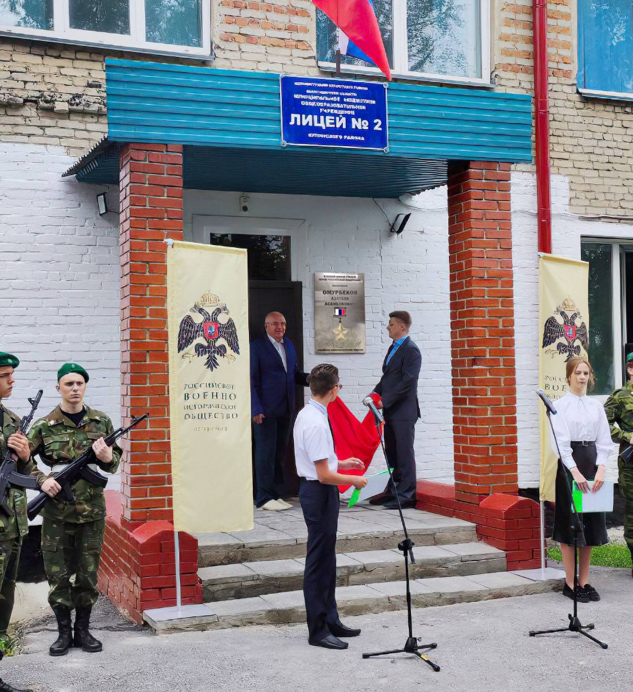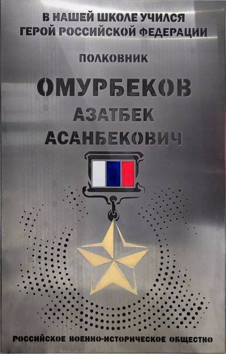 Сегодня на территории лицея № 2 города Купино (Новосибирская область) прошла торжественная церемония открытия мемориальной доски с именем Героя России Азатбека Омурбекова. Памятный знак установлен Российским военно-историческим обществом при поддержке партии «Единая Россия».