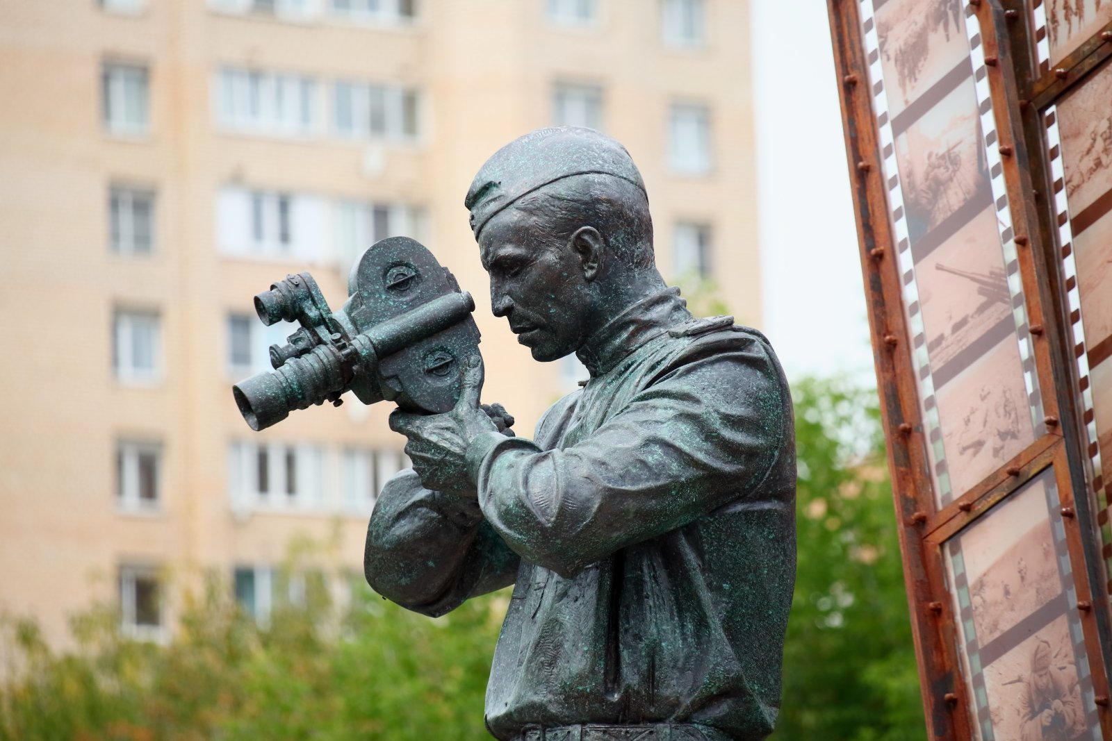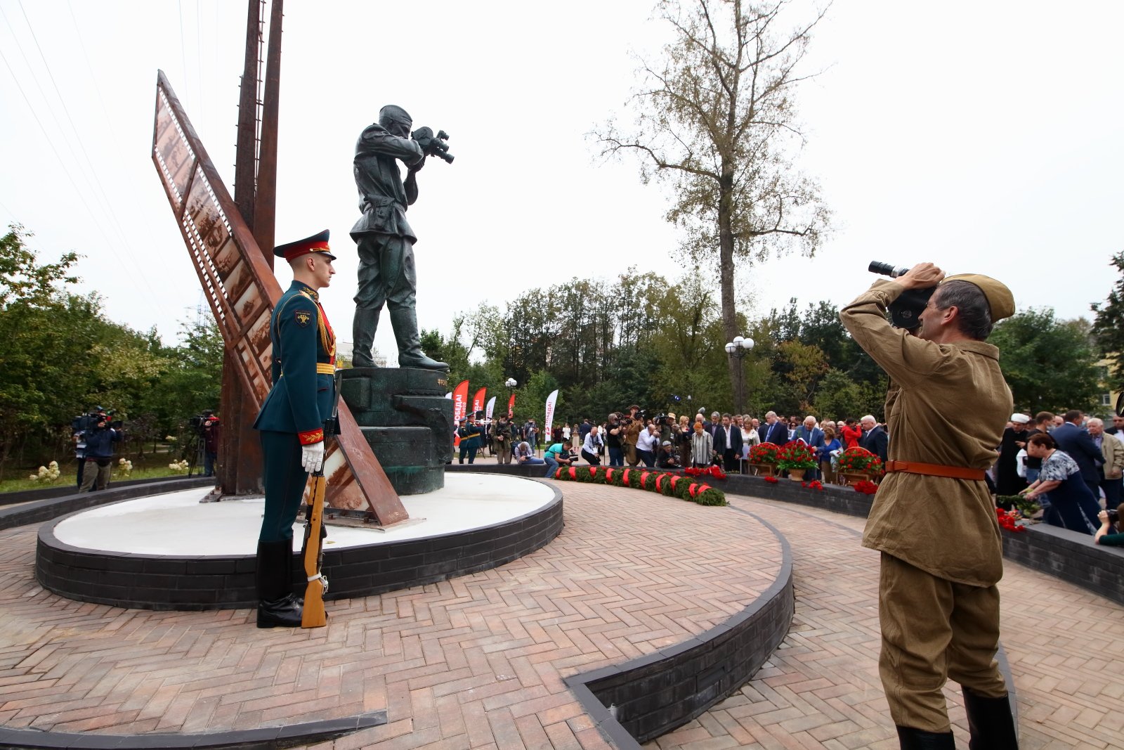 Сегодня в Подмосковном Красногорске открыт первый в России памятник фронтовому оператору. На торжественную церемонию открытия приехали потомки более 60 военных операторов.