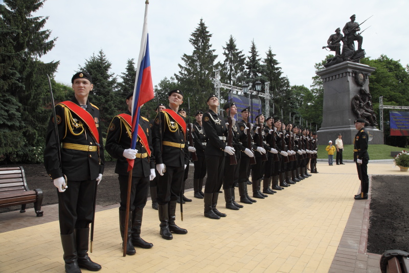 Восьмитонный монумент с тремя фигурами: офицера-дворянина, крестьянина и молодого человека разночинского происхождения открыт сегодня в центре Калининграда. В церемонии открытии приняли участие министр культуры РФ Владимир Мединский, губернатор Калининградской области Николай Цуканов, автор памятника, скульптор Салават Щербаков.
