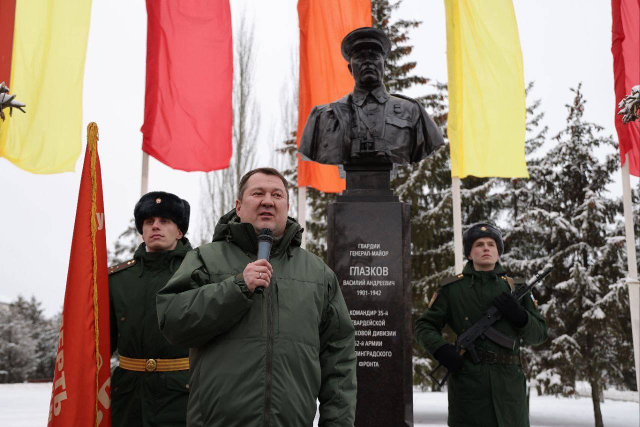 Открытие Памятника-бюста гвардии генерал-майору Василию Андреевичу Глазкову стало одним из важнейших событий празднования 80-летия Победы в Сталинградской битвы.