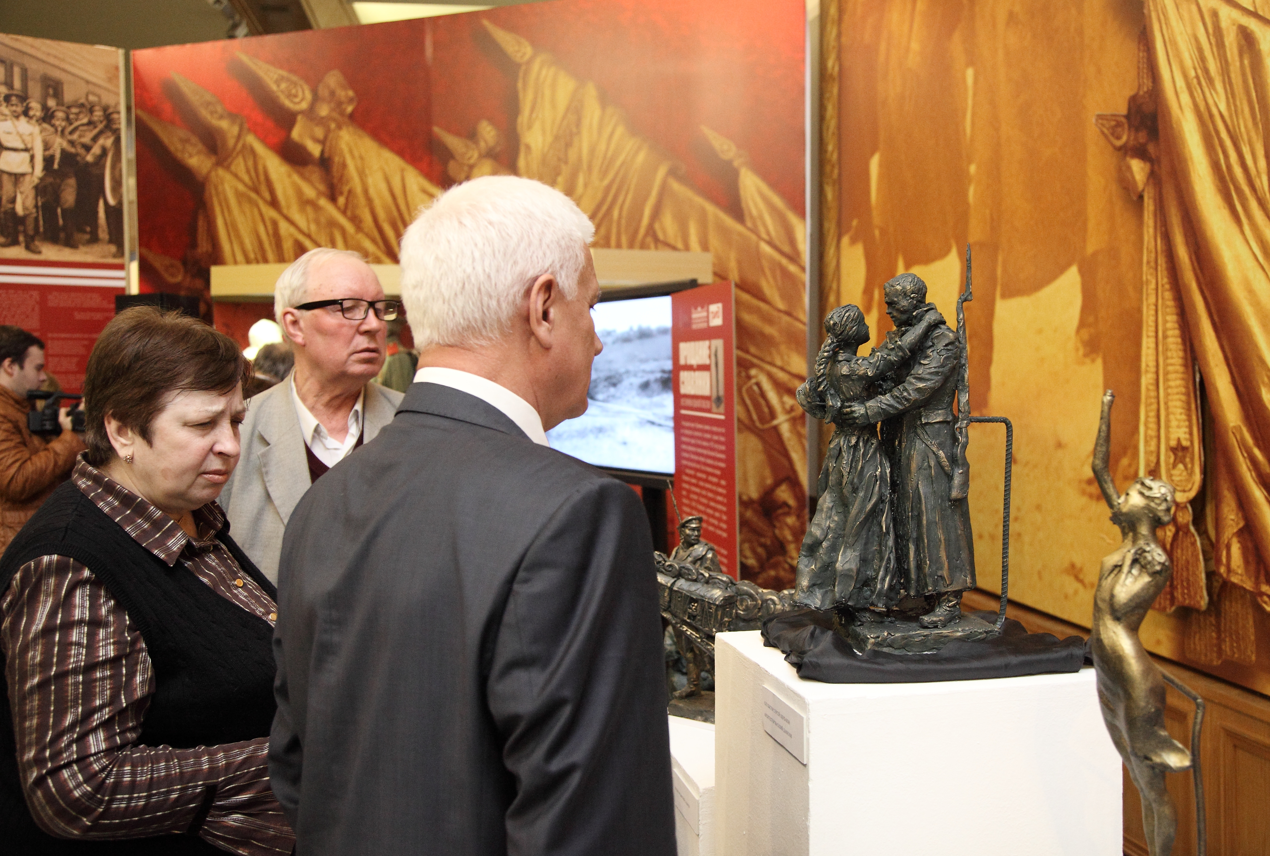 Десять макетов скульптурной композиции будущего памятника, созданных молодыми скульпторами, можно увидеть на выставке "Прощание славянки. История одной песни", которая открылась в среду, 26 марта, в Центральном музее Великой Отечественной войны на Поклонной горе.