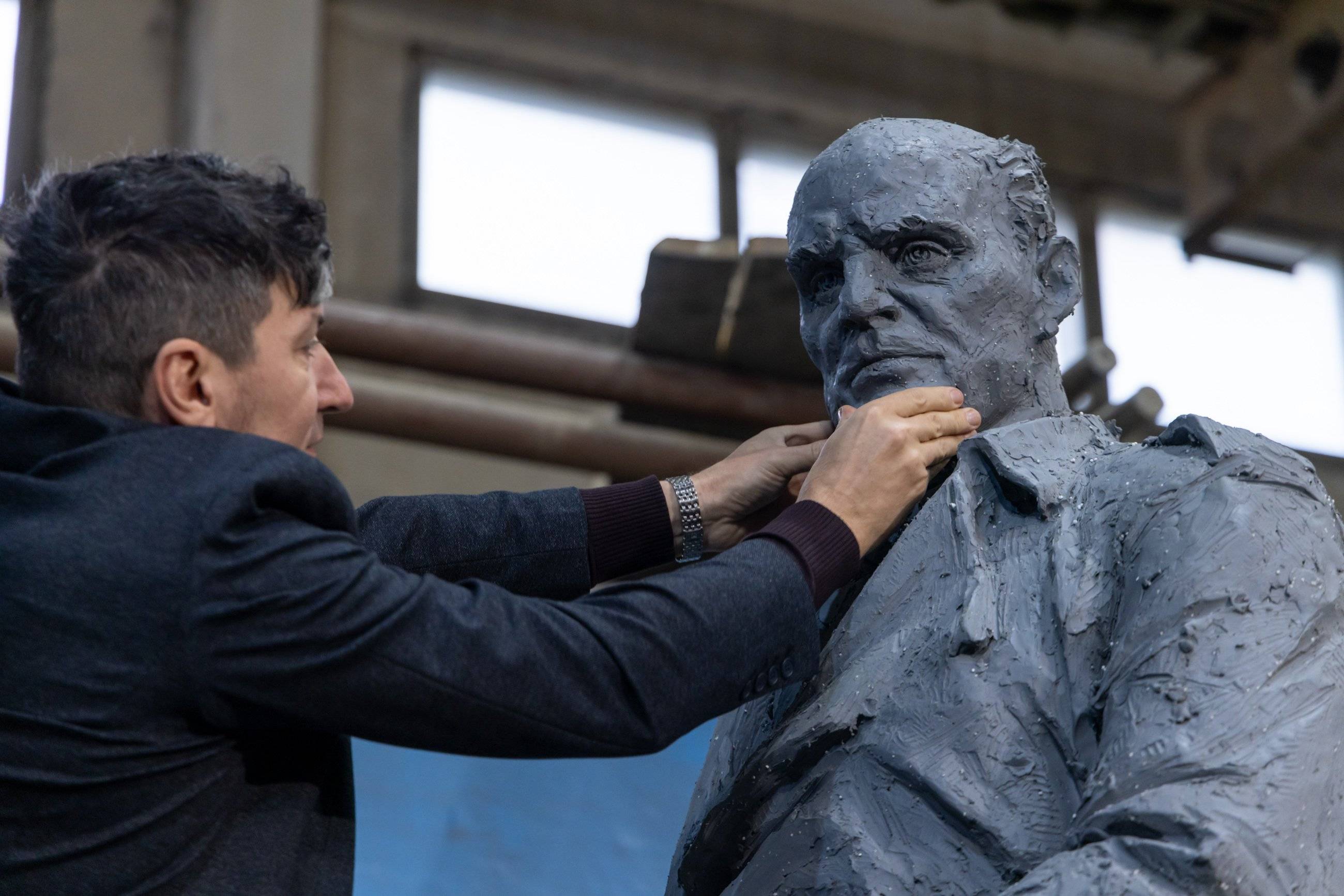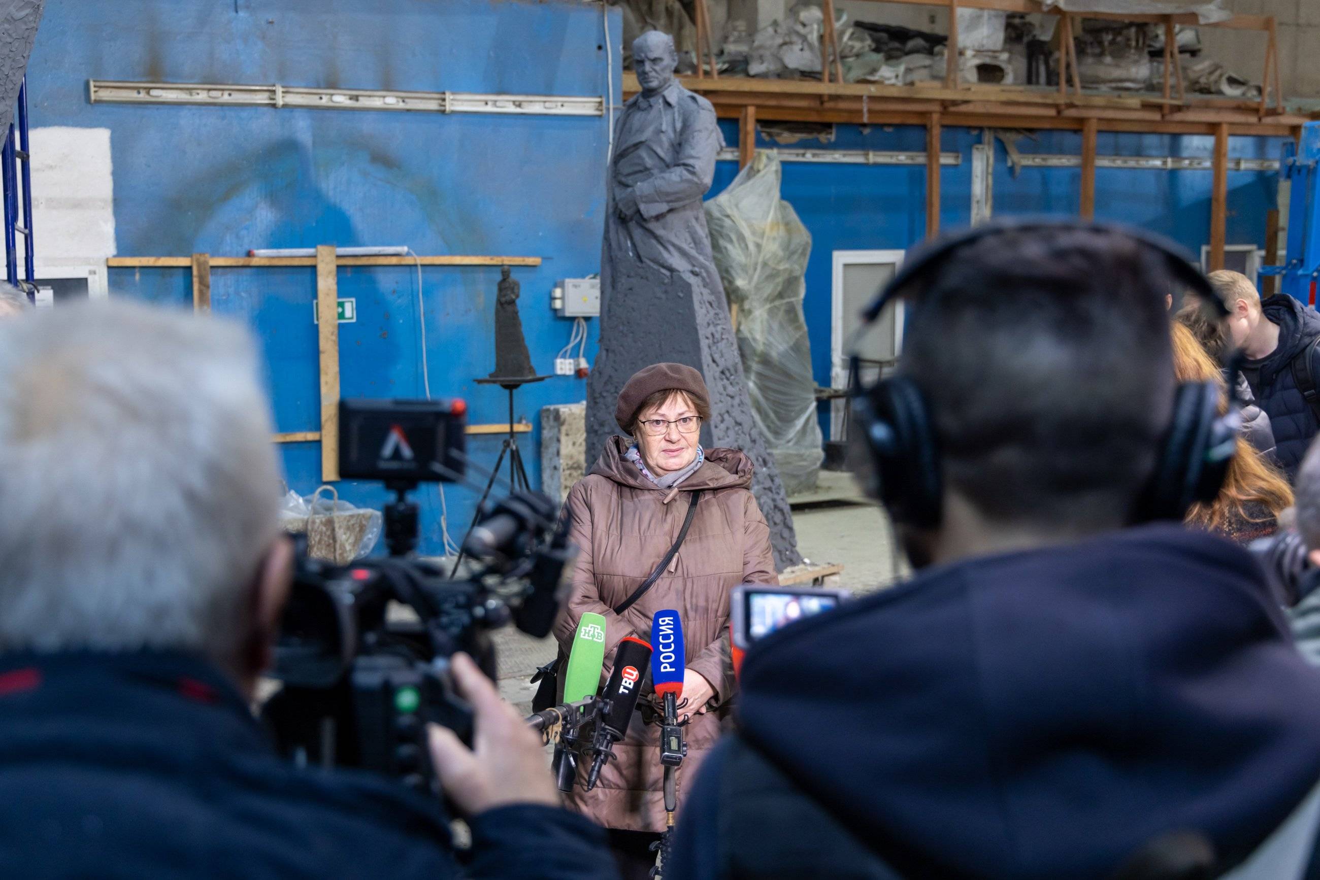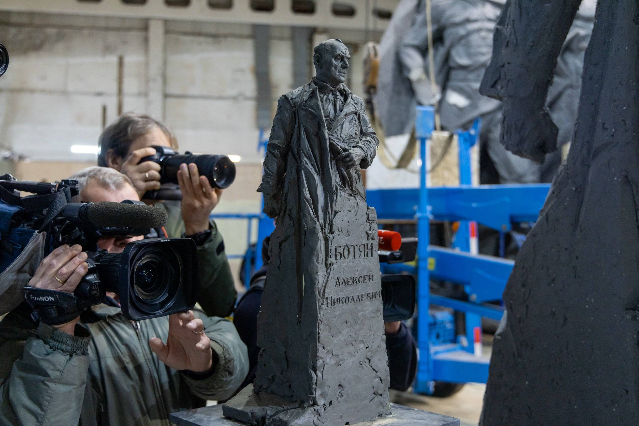 Мастерскую скульптора Михаила Баскакова посетили дочь разведчика Ирина Алексеевна Бабошкина и заместитель начальника Управления Президента РФ по государственной политике в гуманитарной сфере, заместитель Председателя Российского военно-исторического общества Николай Овсиенко. Они осмотрели полноразмерную модель скульптурной композиции в мягком материале (глине) и внесли свои коррективы, чтобы добиться максимального портретного сходства.