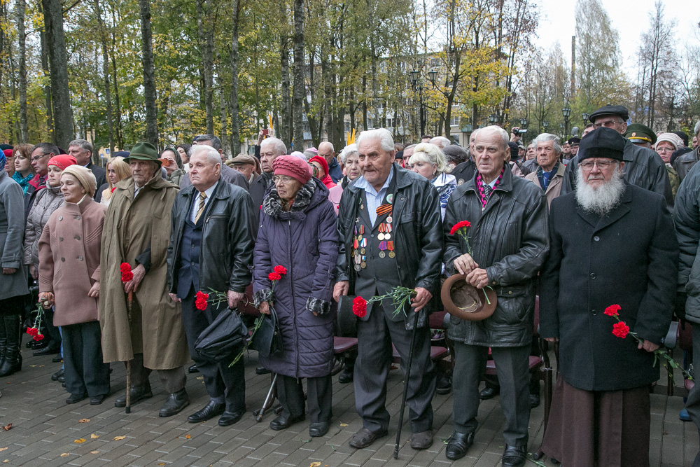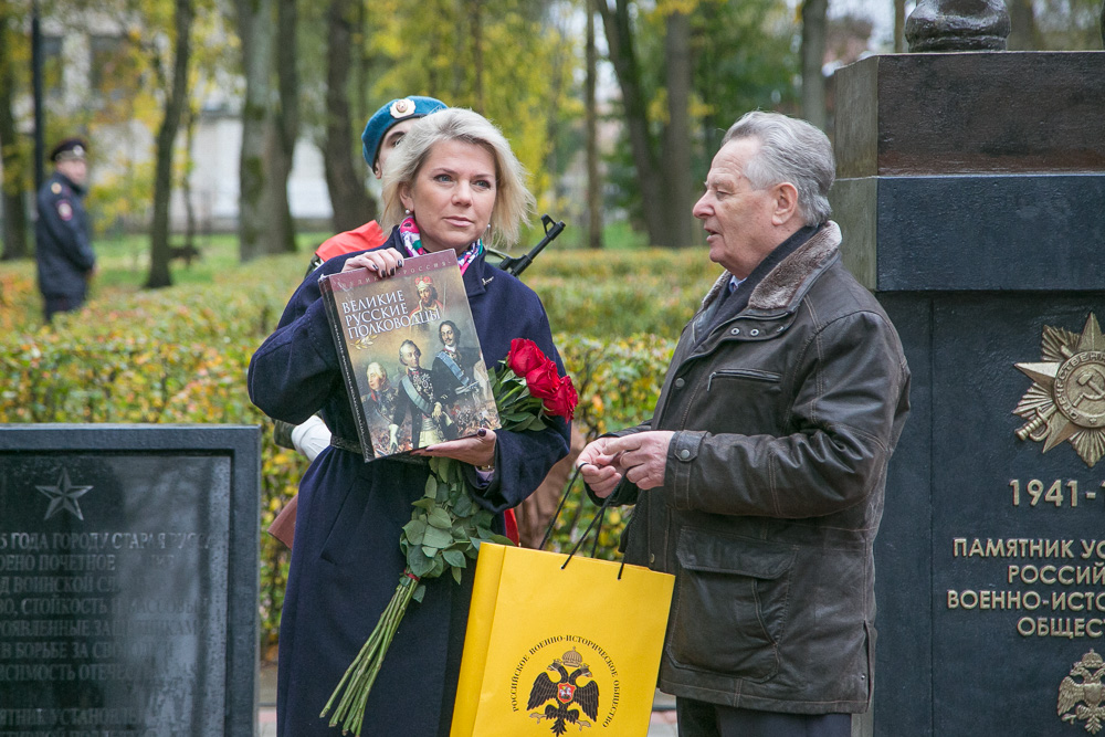 Участников церемонии приветствовала первый заместитель губернатора Новгородской области Вероника Минина. Она напомнила присутствующим, что Великая Отечественная война принесла Старой Руссе непоправимый урон. Более двух лет здесь шли непрерывные бои. Древнейший русский город был почти полностью разрушен. Горькую чашу фашистской оккупации испил каждый житель Старой Руссы. Более 60 человек за бои под Старой Руссой получили звания Героя Советского Союза. Многие из них - посмертно. От имени губернатора Новгородской области и правительства региона она поблагодарила всех, кто принял участие в создании и установке памятника.