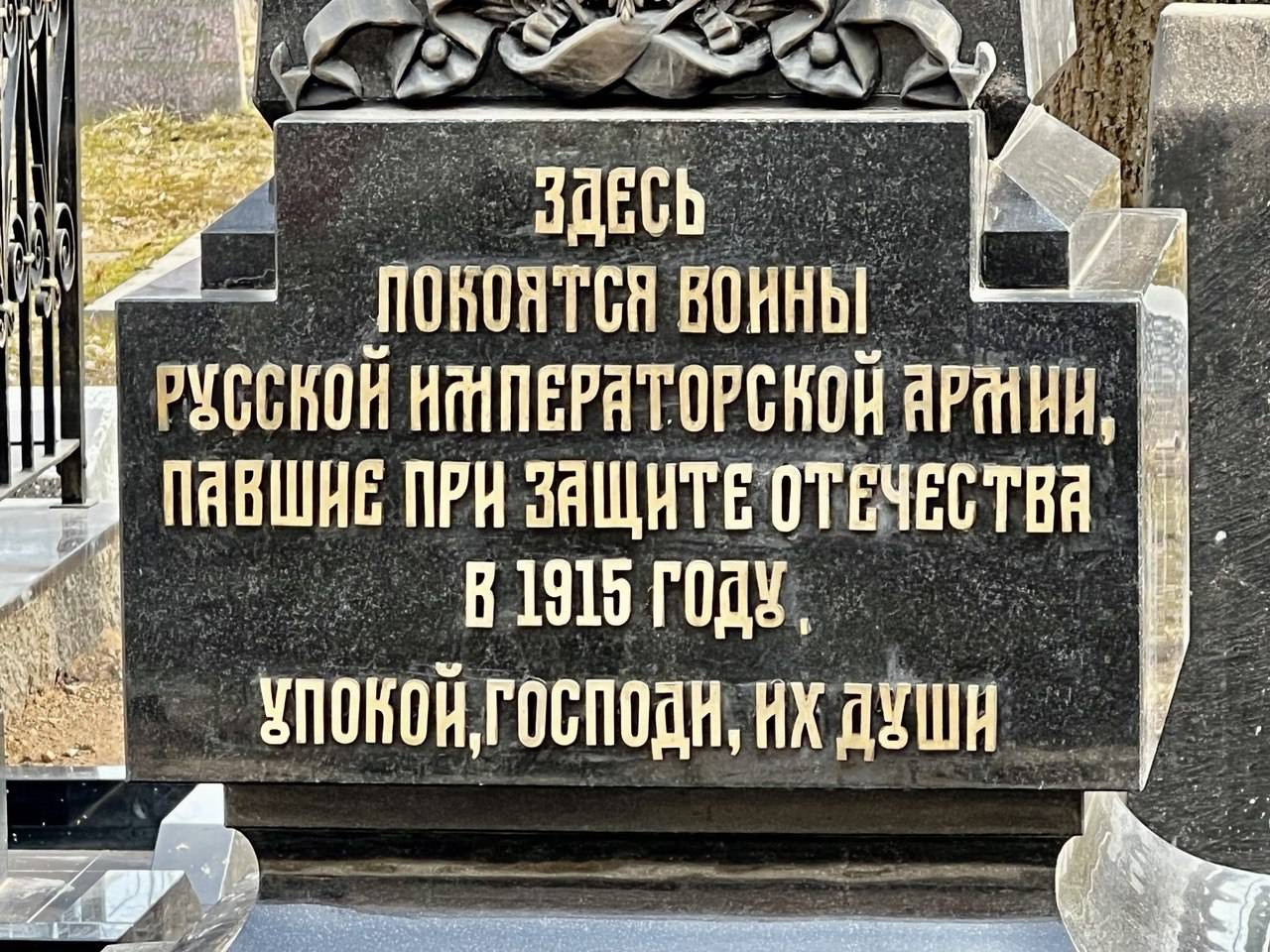 Памятник установлен Российским военно-историческим обществом на братской могиле солдат Русской императорской армии, погибших при защите Отечества в 1915 году. Она находится на Военном кладбище в центре белорусской столицы у Храма святого благоверного князя Александра Невского.