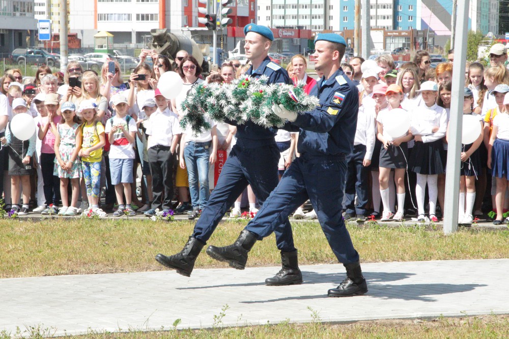 После минуты молчания в память о погибших защитниках Отечества началась торжественная церемония возложения цветов. Торжественность момента подчеркнула музыка военных лет. Ребята из Образовательного центра тоже подготовились — исполнили песню, посвященную любви к родине. Кроме того, в рамках мероприятия были организованы небольшая выставка военной техники и полевая кухня. Всех желающих угощали горячим чаем и гречневой кашей.
