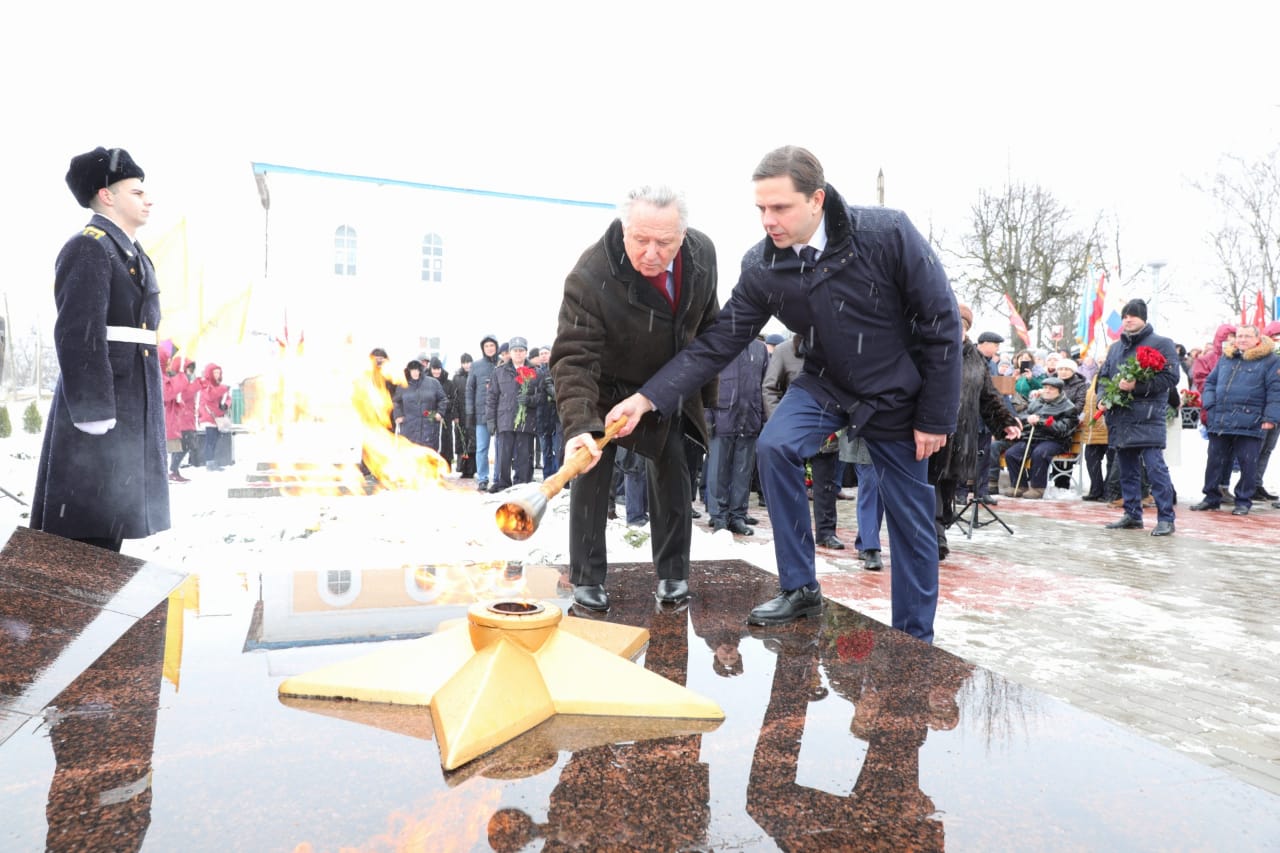 Глава региона Андрей Клычков поблагодарил руководство Российского военно-исторического общества за создание памятника. Чин освящения совершил Митрополит Орловский и Болховский Тихон. В ходе мероприятия в память о воинах-освободителях на мемориале был зажжен Вечный огонь. Завершилась церемония возложением цветов.