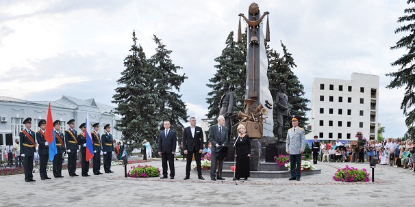 Авторы памятника - скульптор Александра Миронов и архитектор Вадим Фролов. Монумент открыт в рамках IV Международного фестиваля духовых оркестров имени Василия Агапкина. В завершении мероприятия в исполнении сводного оркестра участников фестиваля прозвучали бессмертные произведения Ильи Шатрова вальс «На сопках Манчьжурии» и Василия Агапкина марш «Прощание славянки», ставший мелодией гимна Тамбовской области.