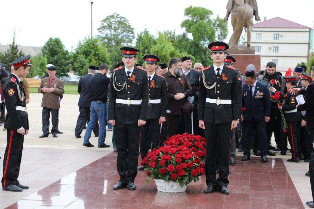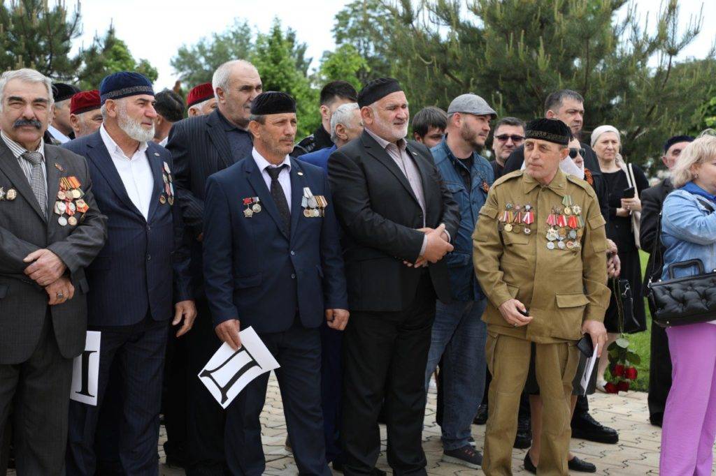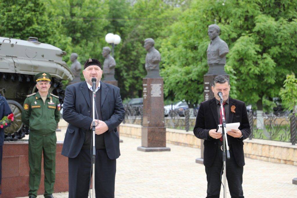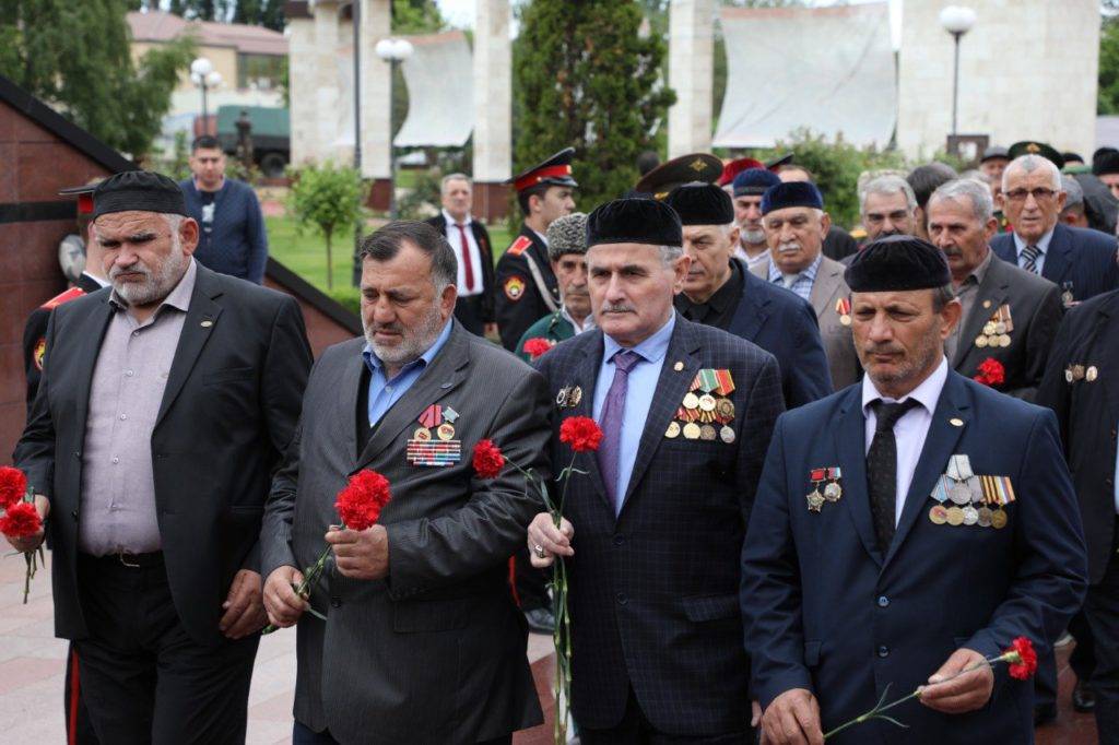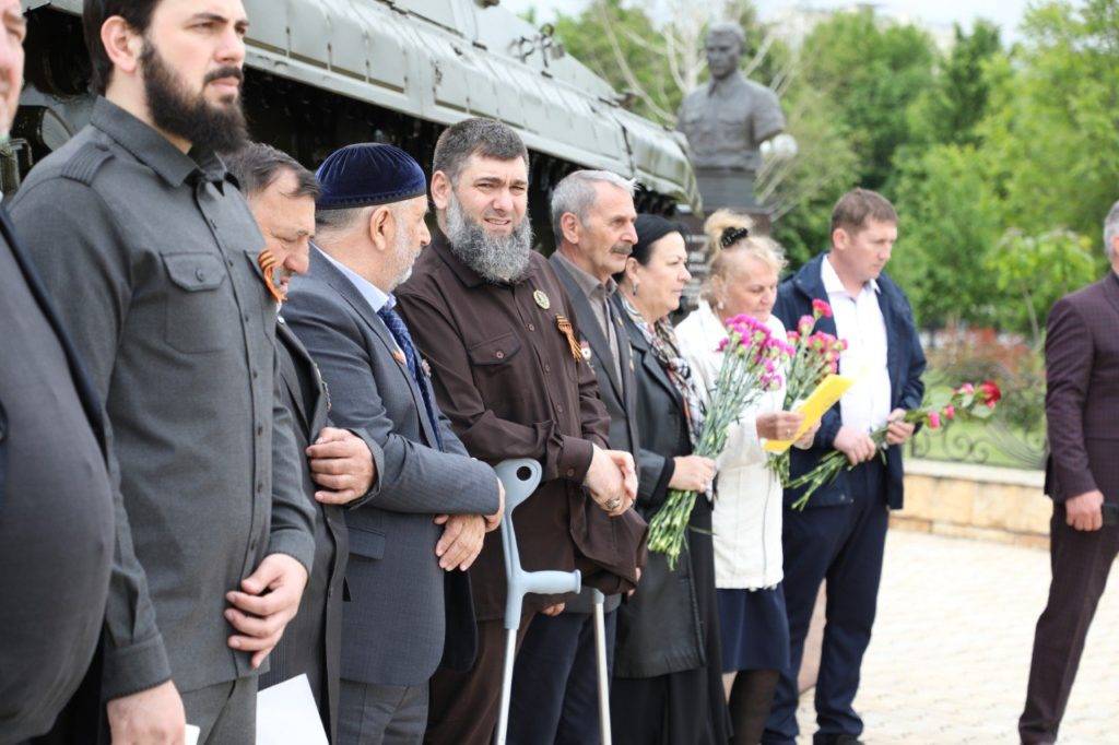 Память погибших Защитников Отечества собравшиеся почтили минутой молчания. Затем состоялась церемония возложения цветов к Мемориальной плите Первому Президенту Чеченской Республики, Герою России А.А.Кадырову.