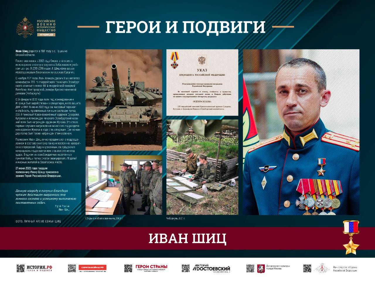 Полковник Иван Шиц удостоен почётного звания Героя России Указом Президента Российской Федерации. В конце мая в ходе боевых действий танковый полк под командованием Ивана Александровича, сломив сопротивление противника, первым ворвался в город Лиман. Проявляя героизм и мужество, Иван Александрович находился на передовой, продвигался с подразделением в составе экипажа танка.