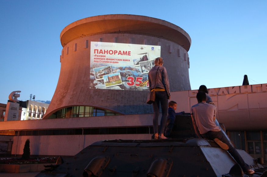 Особое место среди юбилейных мероприятий занял проекционный показ документального фильма, рассказывающий об этапах создания панорамы «Разгром немецко-фашистских войск под Сталинградом». Демонстрация фильма проходила под открытом небом.