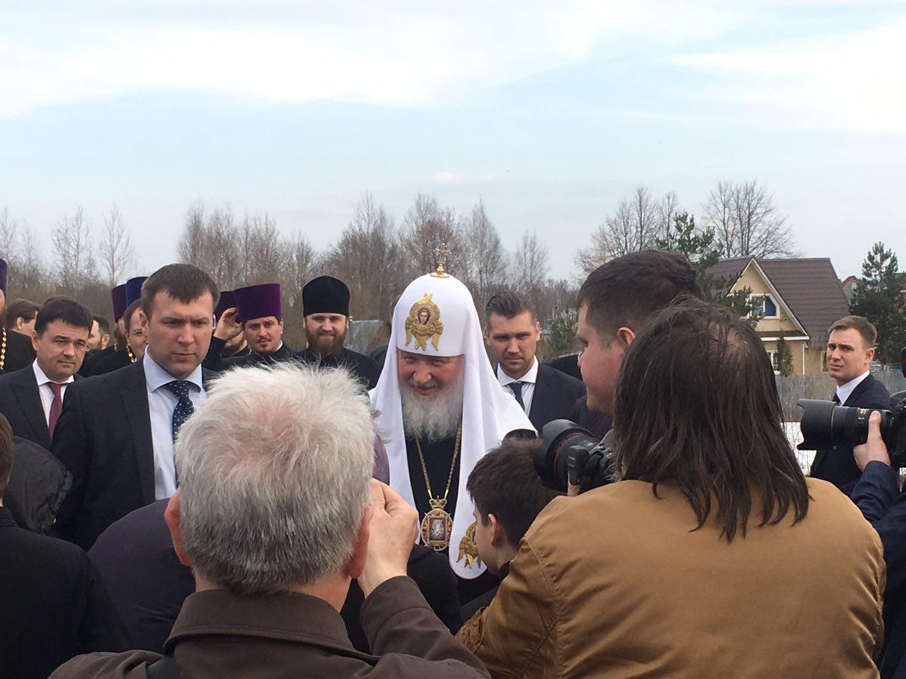 Вместе со Святейшим Патриархом в Гагино прибыли Министр культуры РФ, Председатель Российского военно-исторического общества Владимир Мединский, губернатор Московской области Андрей Воробьев, Патриарший наместник Московской епархии митрополит Крутицкий и Коломенский Ювеналий, епископ Серпуховской Роман и епископ Луховицкий Петр.