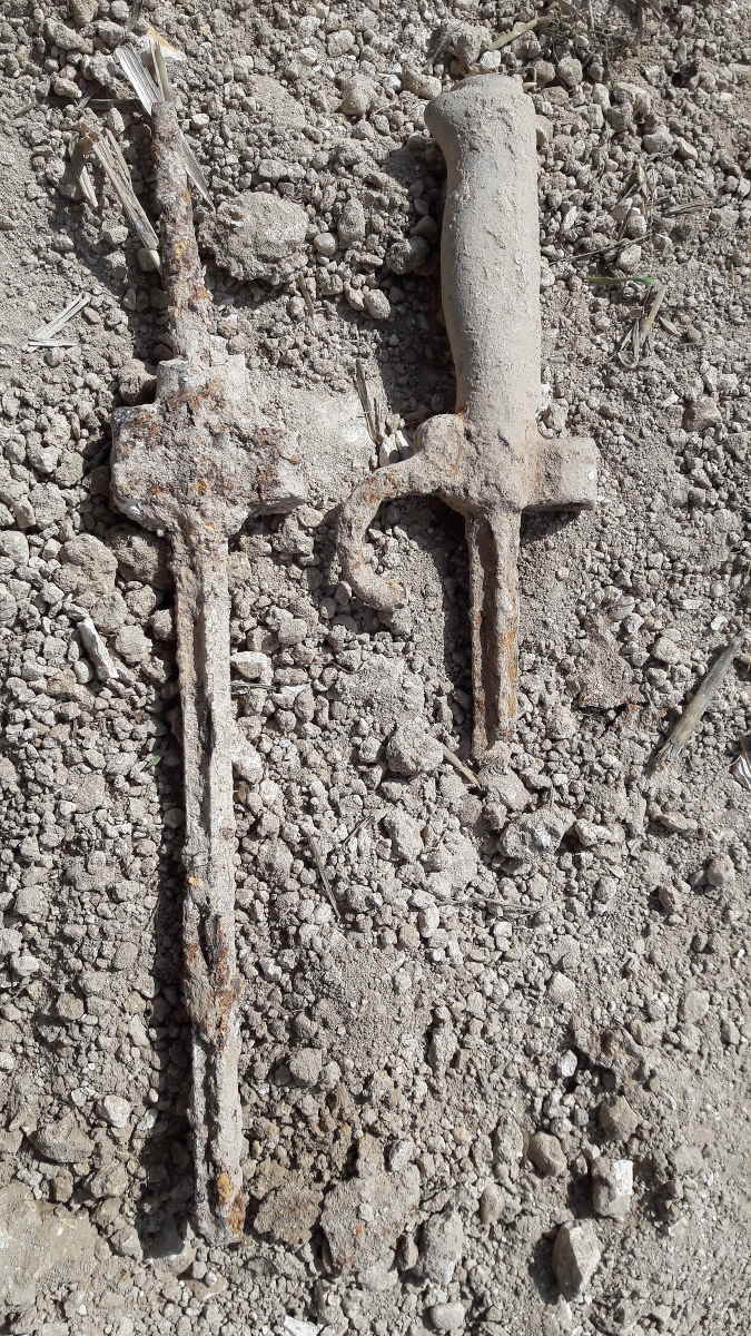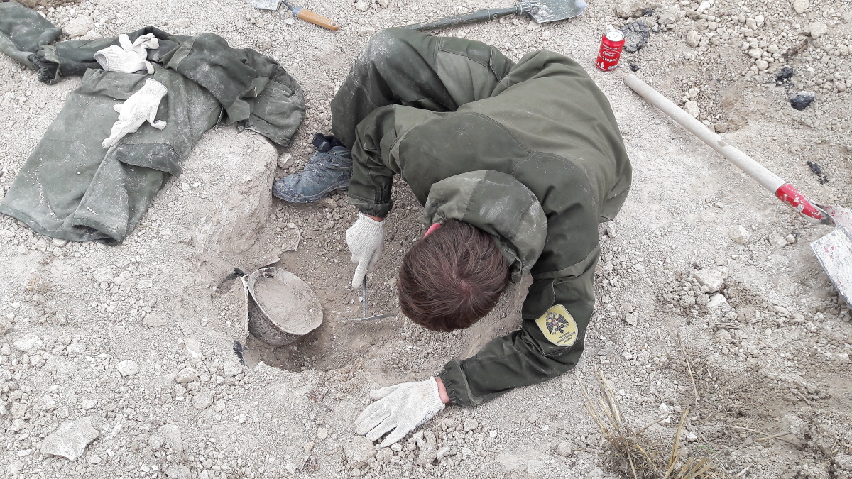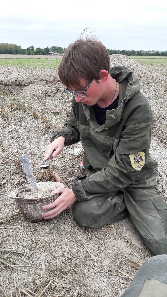 - Грунт здесь тяжелый, почти везде камень. Работать очень сложно. Зато много находок, это вдохновляет, - рассказал руководитель экспедиции Александр Емельянов. – Зарывшись на глубину почти 6 метров, мы обнаружили очень интересные предметы: русский конический котелок, каску Адриана с остатками русской кокарды, обломки штыков от французской винтовки Лебедь, несколько фляжек, использовавшихся в РЭК, немецкие и французские котелки, лопаты, кирко-мотыги, - добавил он.