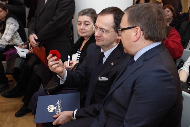 - В прошлом году проделана огромная работа организационным комитетом по подготовке мероприятий, связанных со 100-летием начала Первой мировой войны во главе с Председателем Государственной Думы Сергеем Евгеньевичем Нарышкиным, - отметил в своем выступлении Владимир Мединский. – Российским военно-историческим обществом установлены мемориалы и памятники героям этой войны в Москве, Калининграде и Калининградской области, в Липецке и Саранске, Пскове, памятник Николаю II открыт в центре Белграда. Издано множество научной литературы, проведены конференции, сняты циклы документальных фильмов, подготовлен и проведен тематический Урок мужества во многих образовательных учреждениях страны. Организован ряд крупнейших выставок, одной из которых является экспозиция в Государственном историческом музее. За время ее работы, с августа прошлого года по февраль нынешнего, ее посетило не менее ста тысяч человек.