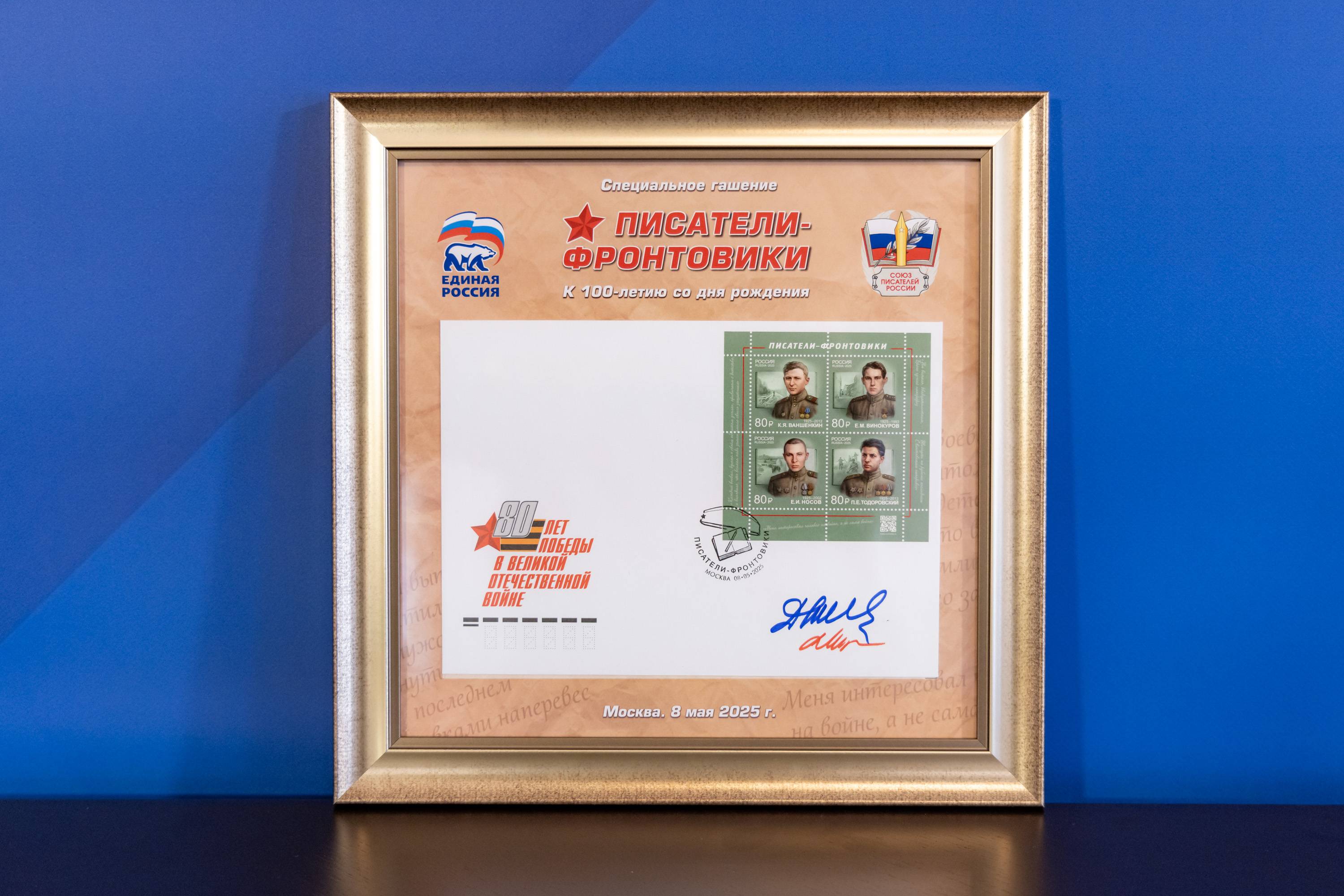 Почтовые марки посвящены памятной годовщине - 80-летию Победы в Великой Отечественной войне. Выход серии почтовых марок, посвященных писателям-фронтовикам, был организован по инициативе партии «Единая Россия» в рамках федерального партийного проекта «Историческая Память».