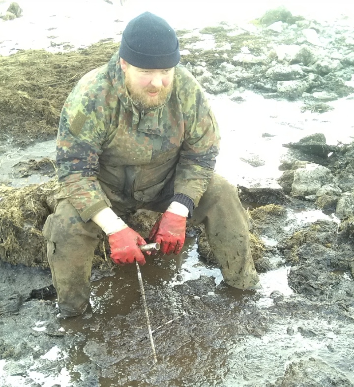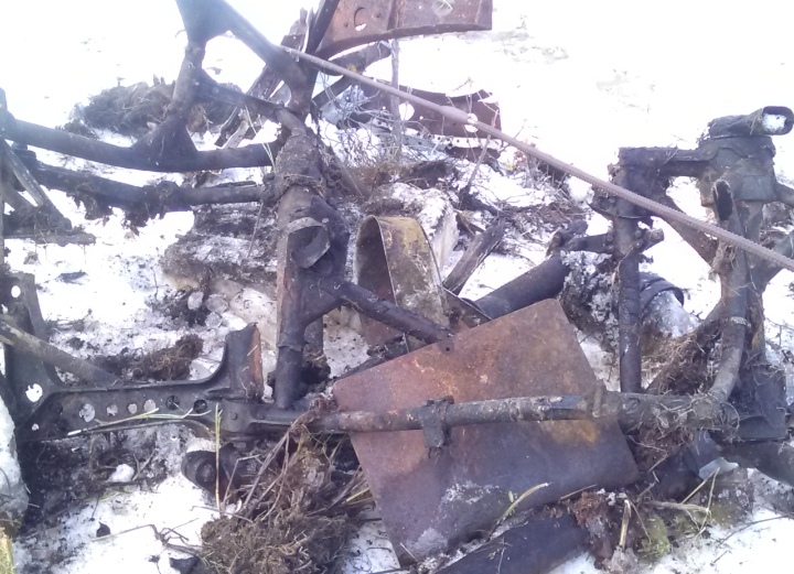 В болоте были найдены обломки боевой машины. По характерным деталям установлено, что они принадлежат пикирующему бомбардировщику Пе-2.