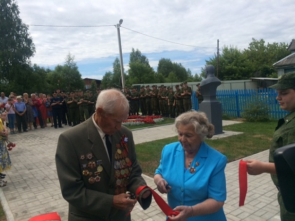 Символическую красную ленточку перерезали малолетняя узница фашизма Раиса Петрашова и участник Великой Отечественной войны, почетный житель Ржевского района Борис Страхов.